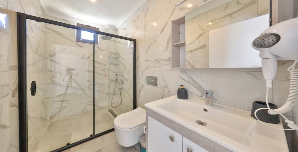 Salon : Salon içerisinde oturma grubu, TV, klima, sehpa bulunmaktadır. Havuz terasına çıkış yapılabilmektedir.