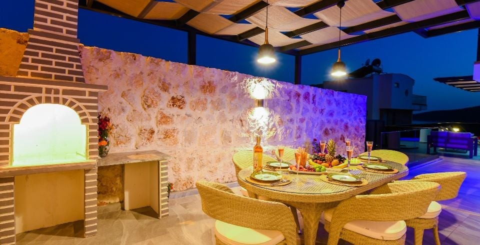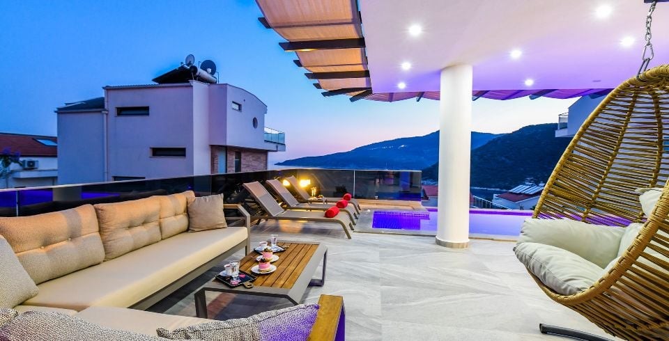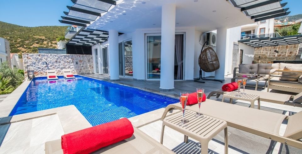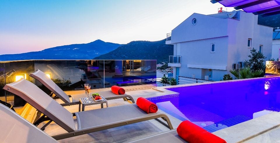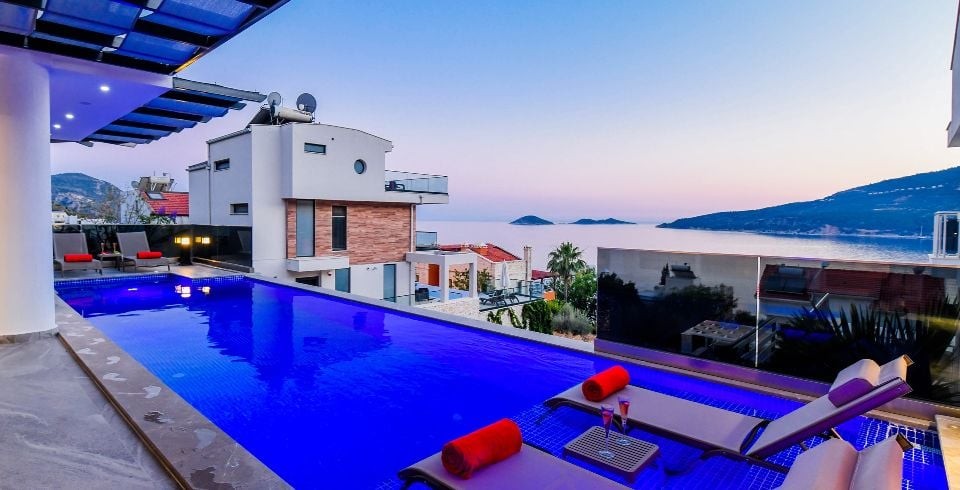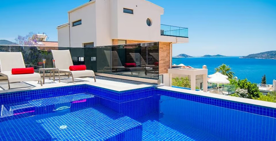 Kalkan Kalamar bölgesinde 3 Yatak Odalı 6 kişilik villamız 2021 yılında tamamlanmış olup deniz ve ada manzarasına sahip kiralık villamızdır. Özel havuzlu villamız aile ve arkadaş gurupları için ideal seçeneklerimizden biridir. Villamız ters dublekstir. Villamızda hamam , sauna ,masa tenisi ,koşu bandı , langırt bulunmaktadır. Modern bir villa olup size konforlu bir tatil sunmaktadır.