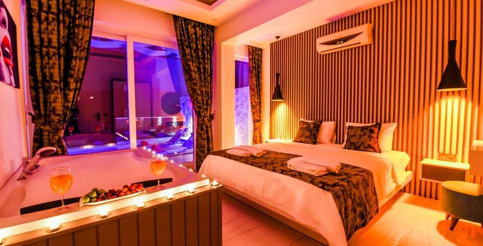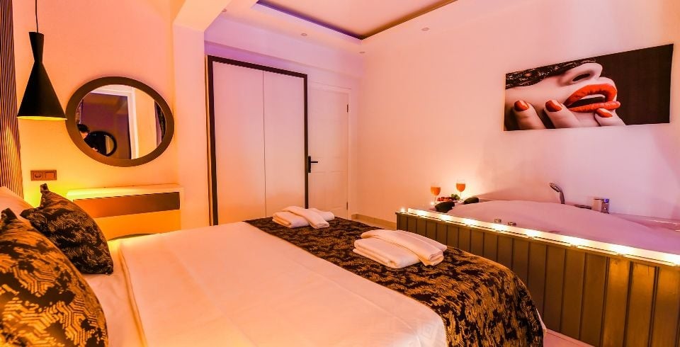 1: Yatak Odası: Çift kişilik yatak, klima, jakuzi, komodin, elbise dolabı, makyaj masası ortak banyo ve tuvalet bulunmaktadır.