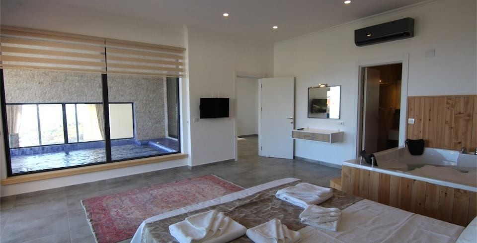 1. Yatak Odası : 1 adet çift kişilik yatak, televizyon, klima, jakuzi, elbise dolabı, makyaj masası, banyo ve lavabo bulunmaktadır.