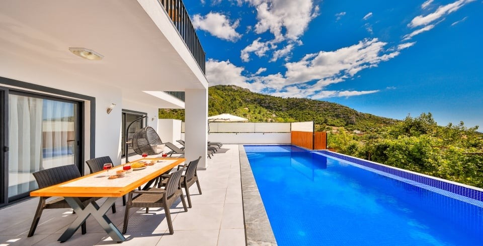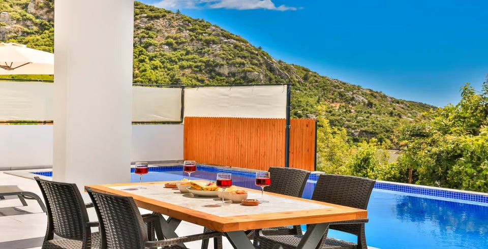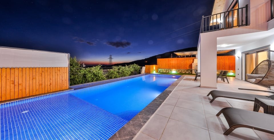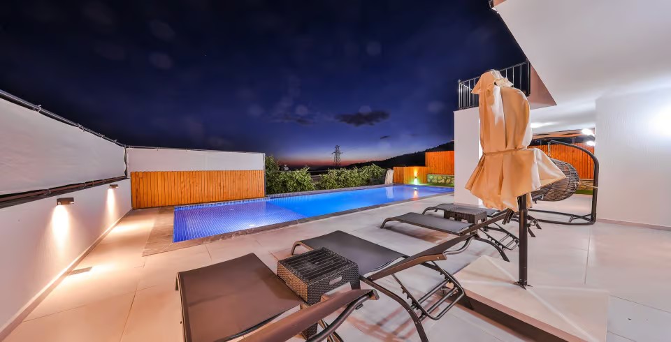 Villa Norton, Kalkan'ın İslamlar Bölgesinde, doğa ile iç içe, huzurlu bir konumda yer alan, 2 yatak odalı ve 4 kişi kapasiteli bir kiralık villa olarak dikkat çekiyor. Villanın iç mekanları modern ve konforlu bir şekilde tasarlanmış, misafirlerin rahatı düşünülerek her detay özenle hazırlanmıştır. Her yatak odasında, biri çift kişilik diğeri iki adet tek kişilik yatak olmak üzere, konaklayacak misafirlerin ihtiyaçları düşünülmüş. Ayrıca, bir yatak odasında jakuzi bulunması, konaklamanın lüks ve rahatlatıcı bir deneyim olmasını sağlıyor. Her odanın kendine ait banyosu olması, özellikle gruplar ve aileler için ekstra konfor ve mahremiyet sunuyor. Villanın dış mekanı, korunaklı bir havuz terası, özel yüzme havuzu, barbekü alanı, salıncak ve mini bahçesi ile donatılmış, böylece dışarıda zaman geçirmek isteyen misafirler için ideal bir yaşam alanı sunulmuş. Havuz alanının ön kısmında bulunan perdeleme sistemi ise, istenildiğinde ekstra mahremiyet sağlayarak rahat bir ortam yaratıyor. Doğa ve kısmi deniz manzarası, Villa Norton'u özellikle doğayı ve sakinliği tercih eden aileler, arkadaş grupları ve balayı çiftleri için cazip bir tatil seçeneği haline getiriyor. Bu özel ve huzurlu villa, unutulmaz bir tatil deneyimi yaşamak isteyenler için mükemmel bir seçenektir.