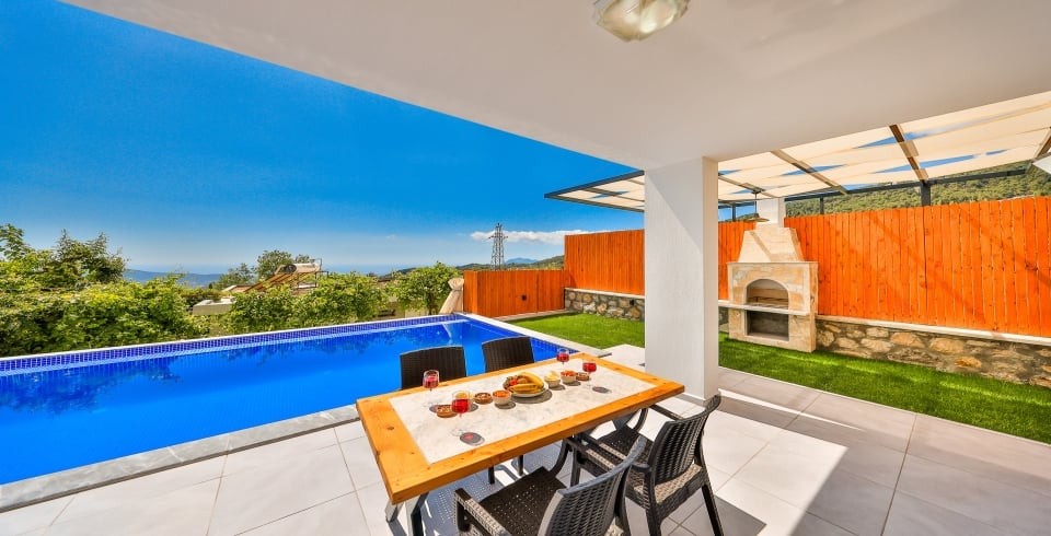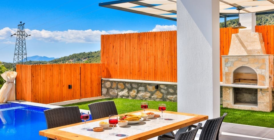 Havuz ve Bahçe : Villamız korunaklı olduğundan dışarıdan görünmemektedir. 1.50 santimetre sığ özel yüzme havuzunun içinde şezlong bulunan bahçemizde ekstra şezlonglar, şemsiye, yemek masası, salıncak ve barbekü alanı bulunmaktadır.