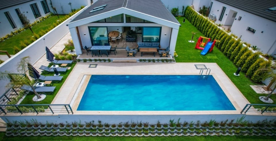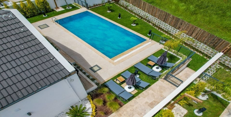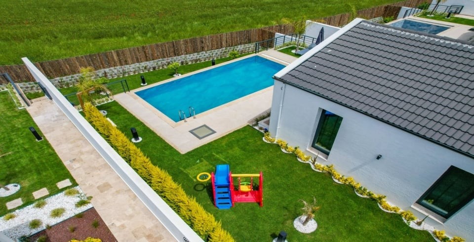 Havuz ve Bahçe: Özel yüzme havuzu, şezlong, şemsiye, salıncak, bahçe mobilyaları, yemek masası, barbekü bulunmaktadır.