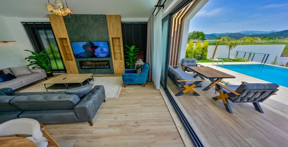 Villa Odella, Fethiye’nin Seydikemer ilçesindeki Zorlar mevkiinde yer alan 6 kişilik kapasiteli, 3 yatak odalı villa konaklamaları için ideal bir tercihtir. Her oda kendi banyosuna sahip olup mahremiyet ve konfor sunar. Villanın özel yüzme havuzu, geniş havuz terası ve bahçesi, doğa ile iç içe huzurlu bir tatil deneyimi sağlar. Modern tasarıma sahip ferah iç mekânında açık mutfak; ankastre ocak, fırın, buzdolabı ve tüm mutfak gereçleri ile donatılmıştır. Oturma alanı; klima, TV ve rahat koltuklarla konforlu bir dinlenme ortamı sunar. Geniş pencereler ve veranda, iç mekânı bahçe manzarası ve dış mekân ile doğal bir uyum içinde buluşturur.