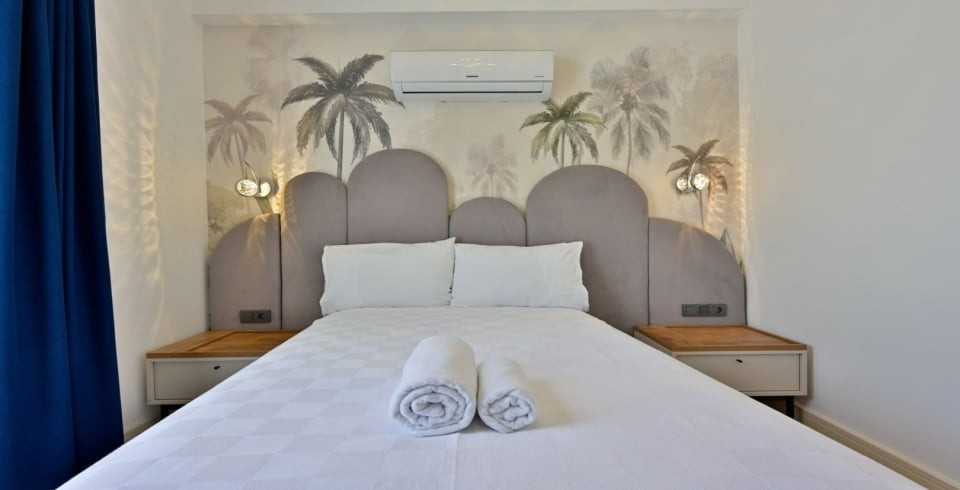 2.Yatak Odası:  1 adet çift kişilik yatak, elbise dolabı, komodin, klima, banyo ve lavabo bulunmaktadır.
