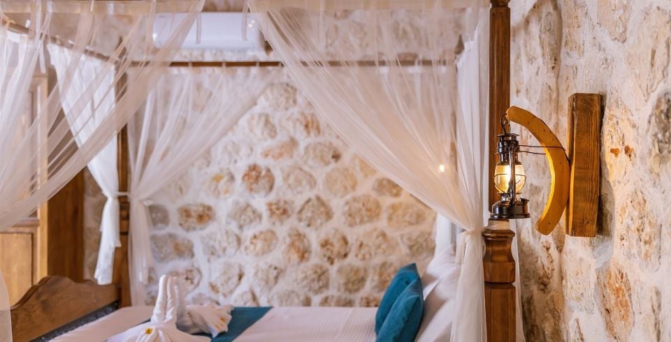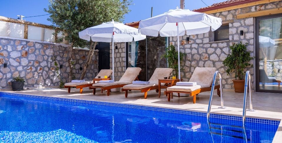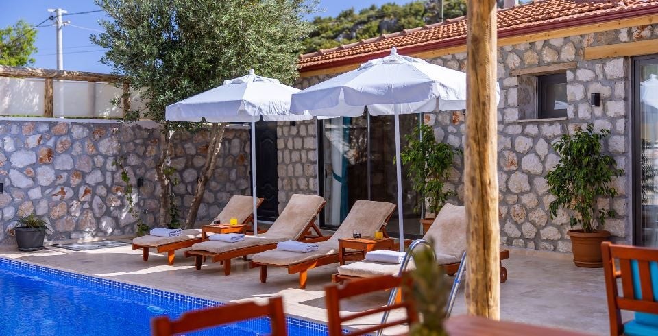 Kalkan yamaç üzerine kurulmuş bir yerleşim yeri olduğu için tüm villalarımıza yokuş çıkılarak ulaşım sağlanmaktadır