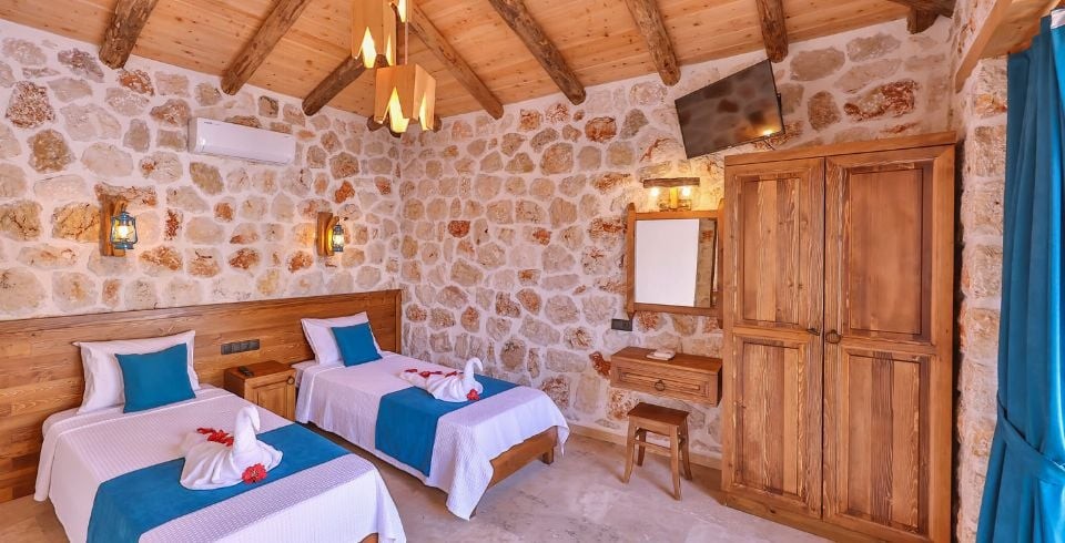 2. Yatak Odası: 2 adet tek kişilik yatak, klima, makyaj masası, TV, komodin, elbise dolabı, banyo & WC bulunmaktadır.