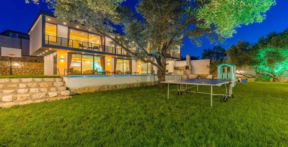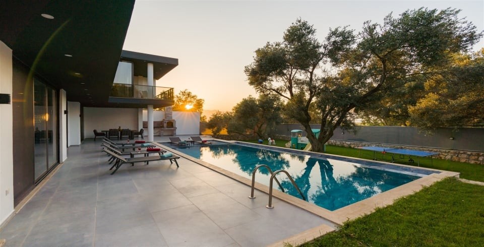 Havuz ve Bahçe : Villamız korunaklı olduğundan dışarıdan görünmemektedir. Özel yüzme havuzu, barbekü, yemek masası, şezlong, şemsiye, masa tenisi, çocuk oyun alanı bulunmaktadır.