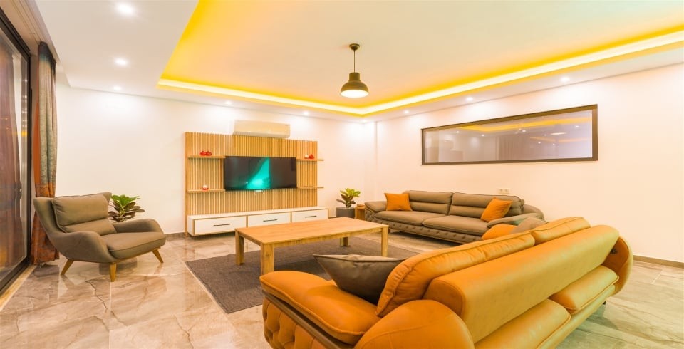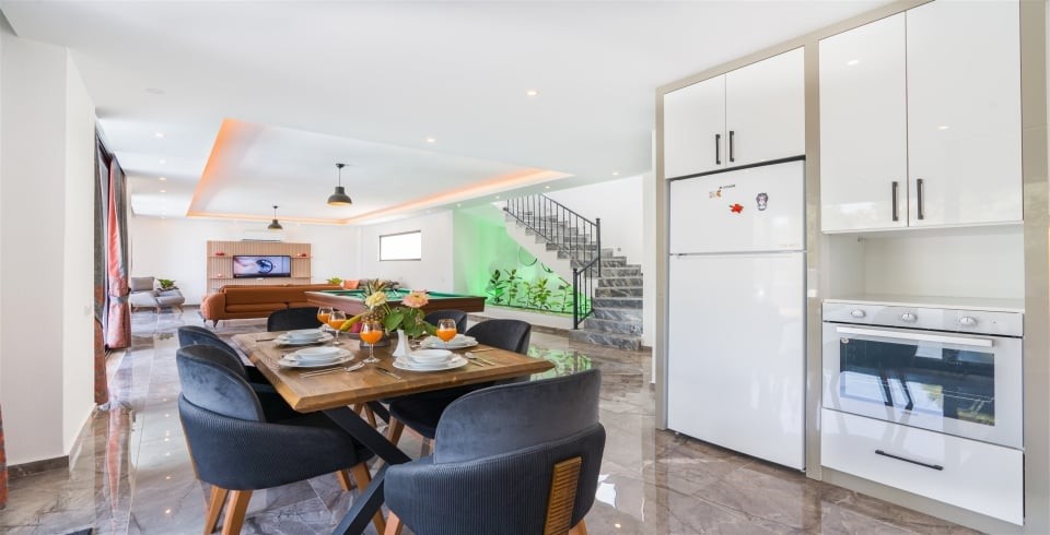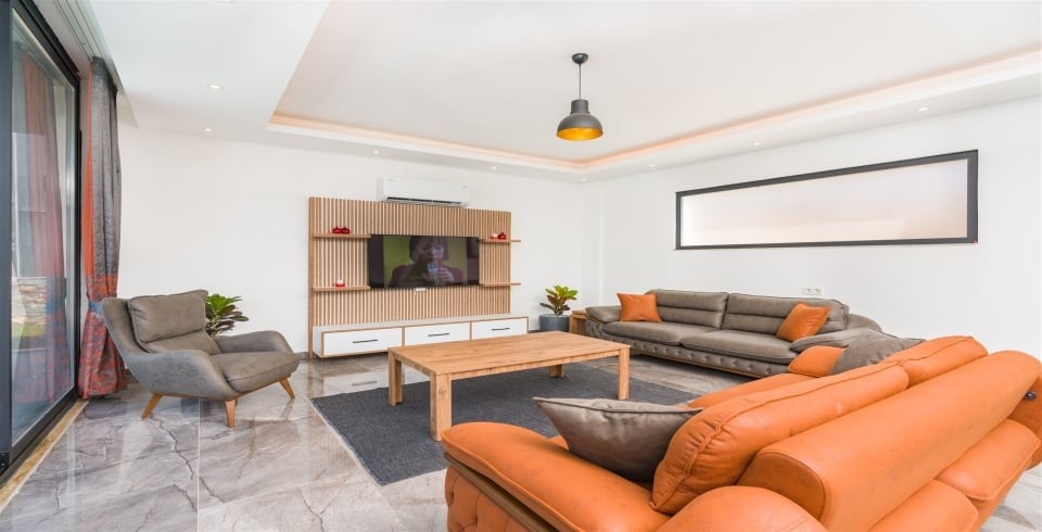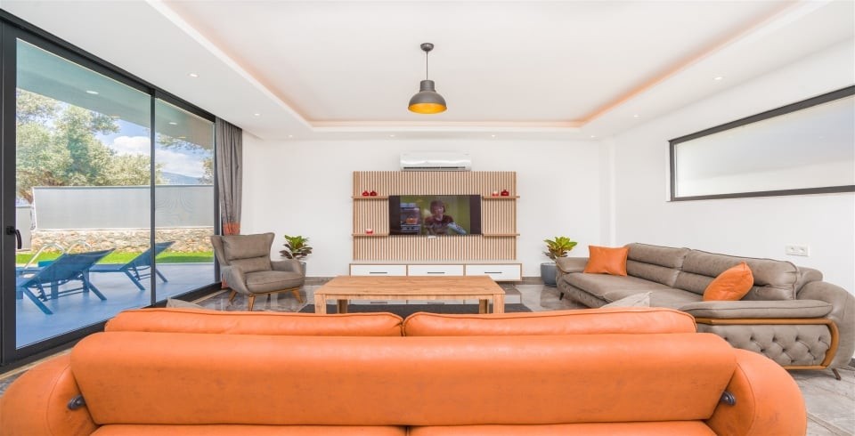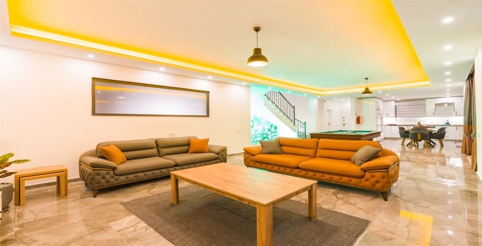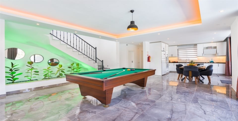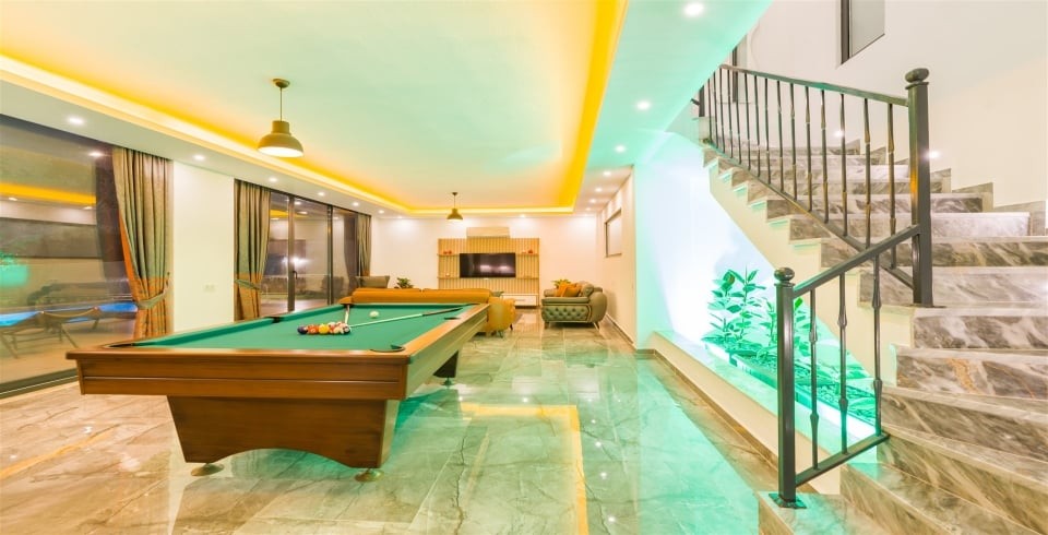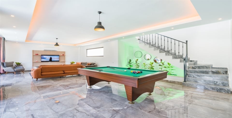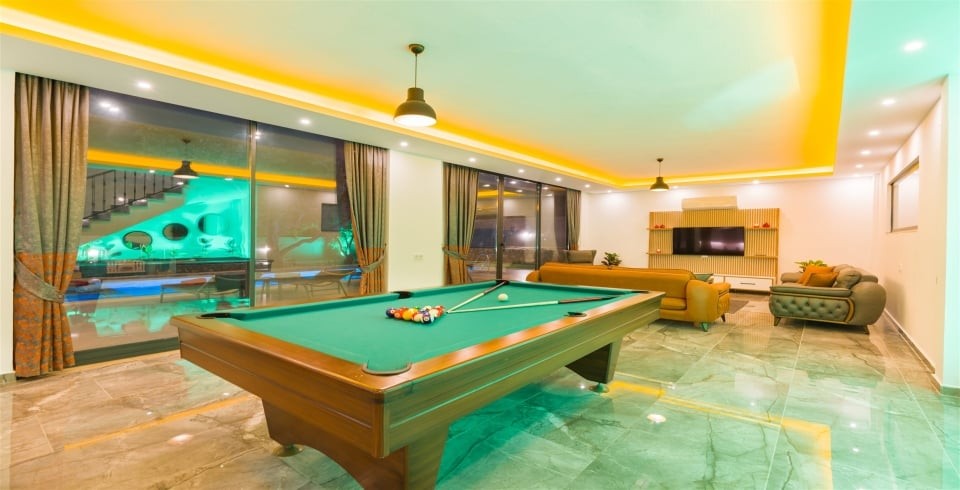 Salon : Villa salonunda oturma grubu, TV, internet, klima, bilardo masası, sehpa bulunmaktadır.