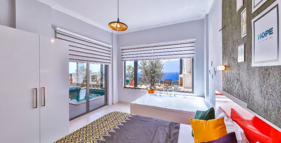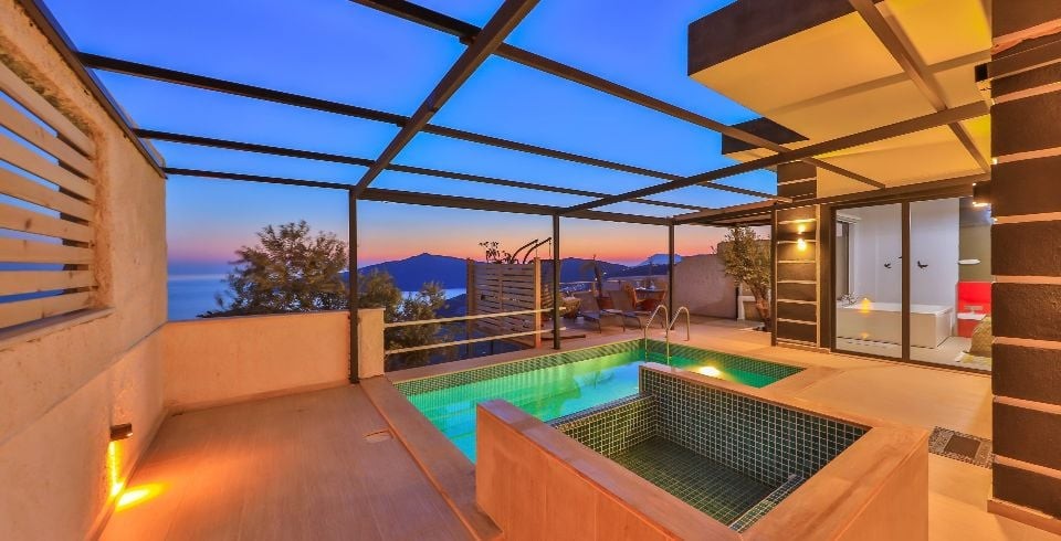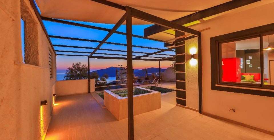 Bütün villa çeşitlerimiz için villalara ilk gün giriş saati öğleden sonra 16.00, tatilinizin sonunda ise villadan ayrılma saatiniz ise sabah 10.00’dur. Aradaki zaman diliminde hijyen için gerekli temizlik yapıldığından dolayı villaya giriş saatinizden erken gelme durumlarında sizlere yardımcı olamayacağımızı belirtmek durumundayız. Bu yüzden sizden ricamız villaya giriş ve çıkış saatlerinize dikkat etmeniz. Kalkanda bulunan bu villamız coğrafi yapısı bakımından, yamaç üzerine kurulmuş bu harika tasarım villamız bu yüzden size harika bir manzara sunmaktadır. Kalkan ve çevresindeki bulunan tüm villalarımıza ulaşmak için, yokuş yukarı çıkılmaktadır ama bunun sonucunda mükemmel bir tatil yerine ulaşmış olacaksınız.