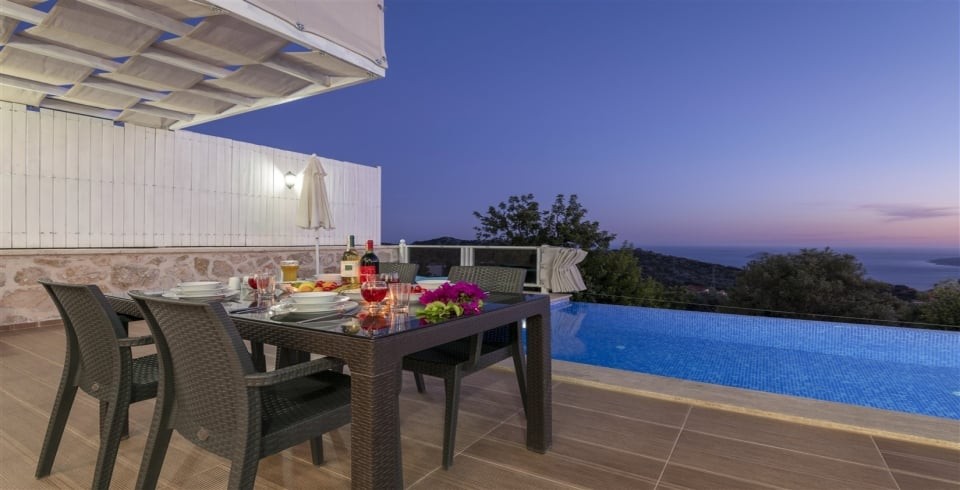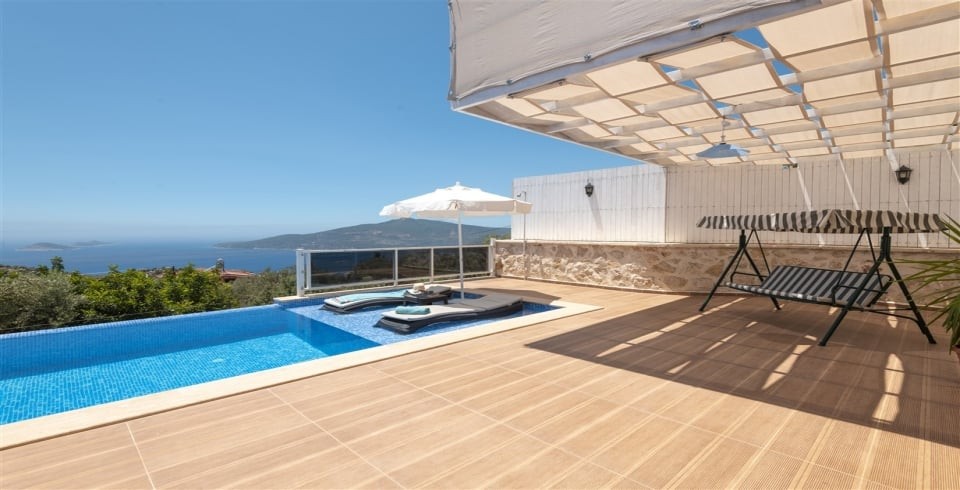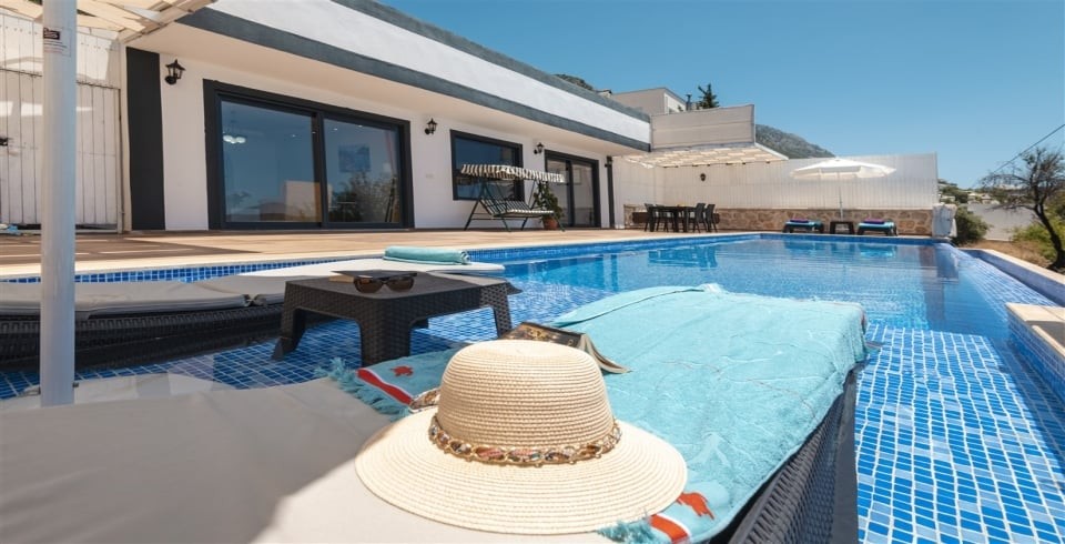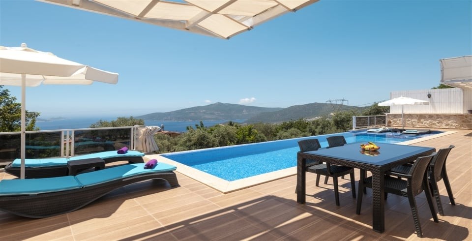 Kalkan’ın Kördere mevkisin de yer alan, yaz aylarının vazgeçilmezi olmaya hazır muhafazakar, kiralık, muhteşem doğa ve deniz manzaralı korunaklı müstakil villamız 2 yatak odalı, 4 kişilik kapasiteye sahiptir. Hem çekirdek ailelerimize uygun şekilde, hem de balayı çiftlerimize uygun şekilde tasarlanıp, süit yatak odasında çift kişilik jakuzi bulunmaktadır. Villalarımız muhafazakar ailelerimize uygun olup, havuz ve havuz terası tamamen korunaklı hale getirilmiştir. Villa Olgun’un arka bahçesinde bulunan bölgesinde ister etlerinizi ister balıklarınızı, ister sebzelerinizi rahatlıkla pişirebilir, afiyetle yiyebilirsiniz. Salon ile birleşik villamızın Amerikan mutfağı bahçeye direkt çıkışlıdır, böylelikle tabak – çatallarınızı rahatlıkla getirip götürebilirsiniz. Sonsuz havuzlu villamız Kalkan Merkez’e yakın bir konumda olup aracınız ile 8 – 10 dakika mesafe uzaklığındadır. Dünyaca ünlü Patara Plajına 30 dakika, Kaputaş Plajına ise 15 dakika sürüş mesafesinde bulunmaktadır. A’dan Z’ye her şeyin eksiksiz bulunduğu villamızda klima, WİFİ internet, ütü, ütü masası, televizyon, DVD, mikrodalga, elektrikli su ısıtıcısına kadar her ihtiyacınız olan eşyayı bulabilir, kendinizi evinizdeymiş gibi hissedebilirsiniz. Tamamen kapalı ve korunaklı havuzu ile rahat bir şekilde tatil yapabilir, korunaklı tatil yeri arayan misafirlerimize uygun olan Akdeniz Villalarını rahatlıkla tercih edebilirsiniz. Misafirlerimize şimdiden keyifli tatiller diler sonsuz rahat bir şekilde tatilinizi geçireceğinize temin edebiliriz.