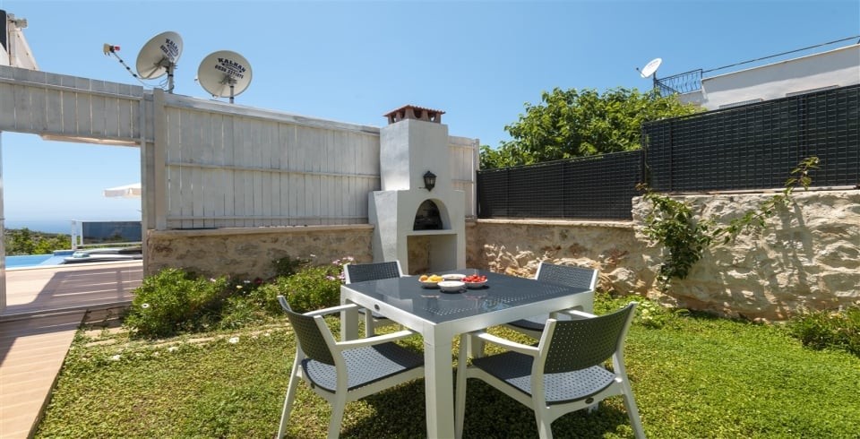 Bahçe : Villamızın bahçesinde özel yüzme havuzu, güneşlenmeniz için 4 adet şezlong, güneşlenme terası, 4 kişilik masa, oturma grubu, mangal keyfiniz için barbekü, güneş şemsiyesi bulunmaktadır.
