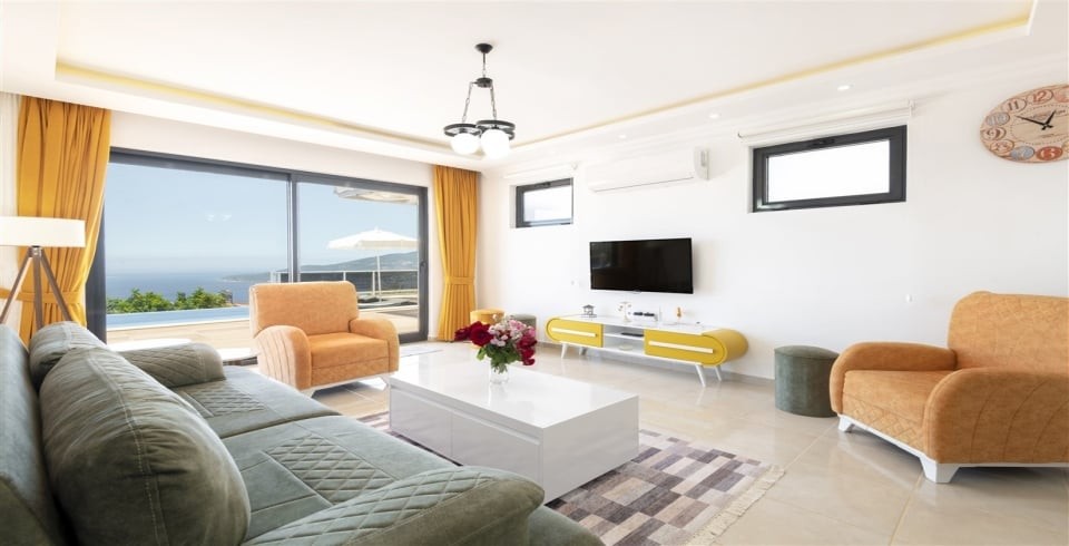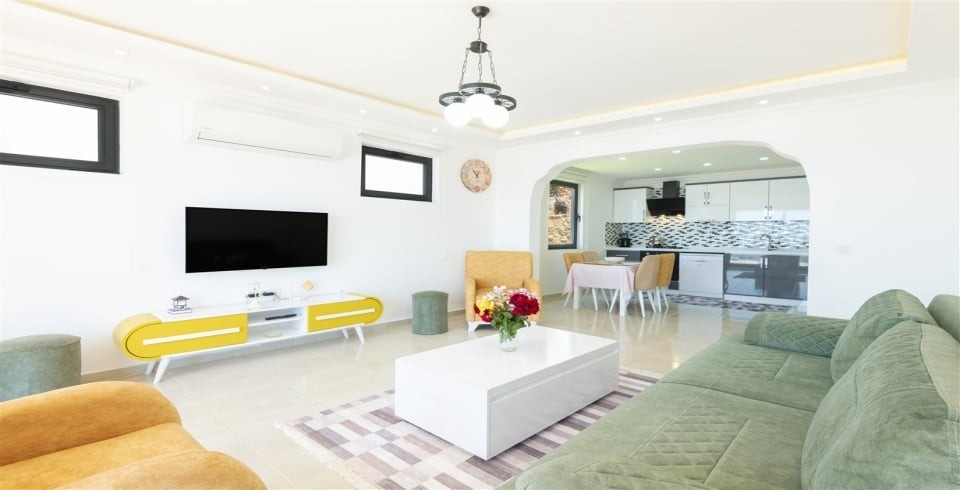 Salon : Villa Olgun’un salonunda sizi şık bir oturma grubu ile klima, televizyon, internet, uydu, koltuk, sehpa ile ferah bir salon bekliyor olacaktır. Havuz terasına çıkış yapılmaktadır.