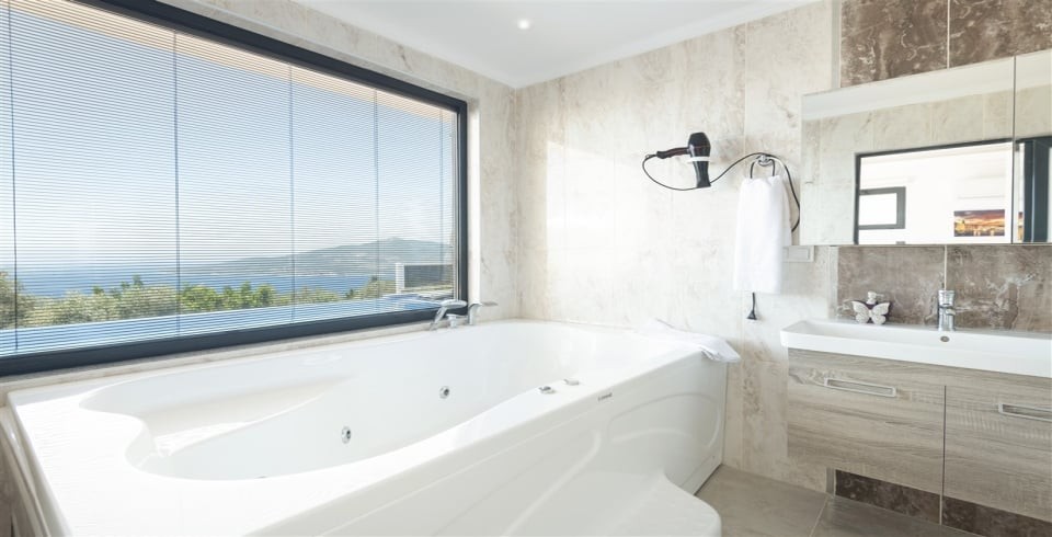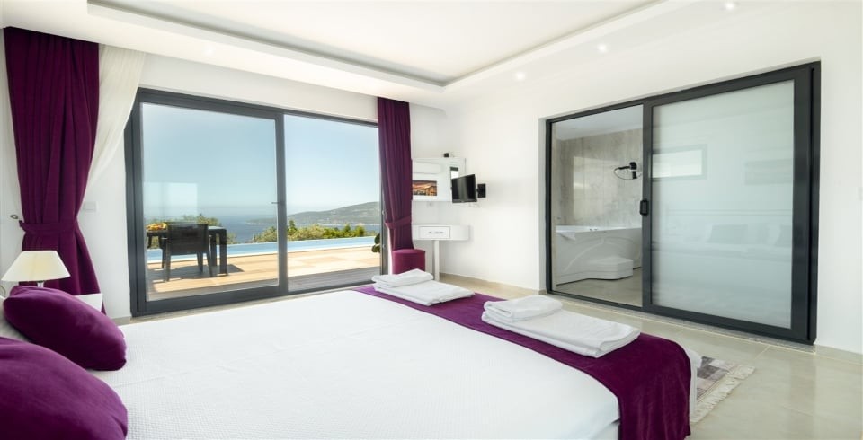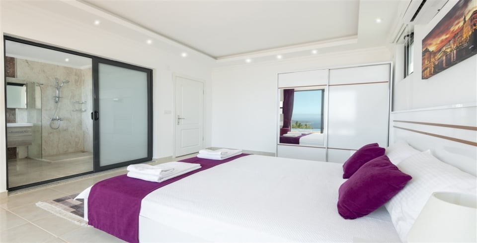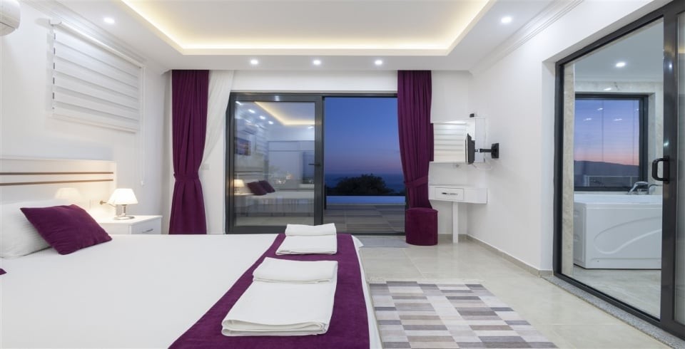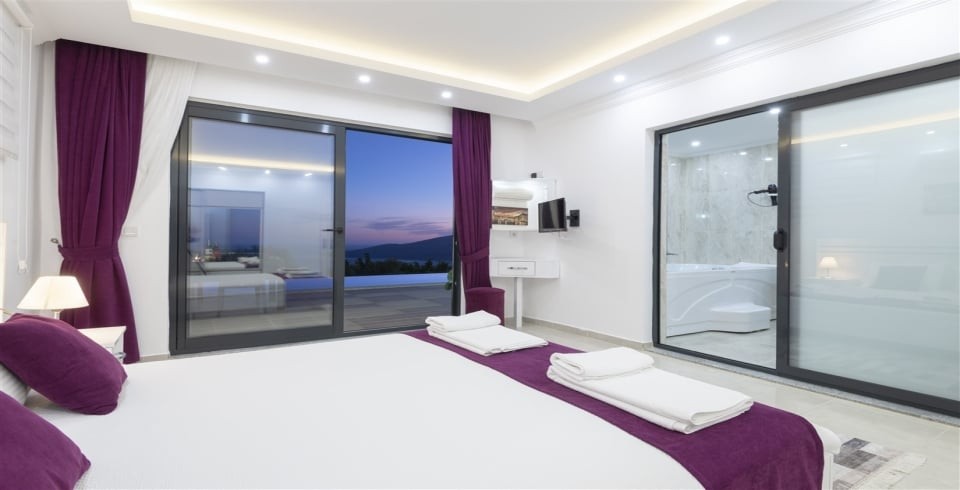 1. Yatak Odası : Çift kişilik süit yatak odası, klima, elbise dolabı, komodin, makyaj masası, jakuzi, ısıtmalı havuz, banyo & lavabo bulunmaktadır.
