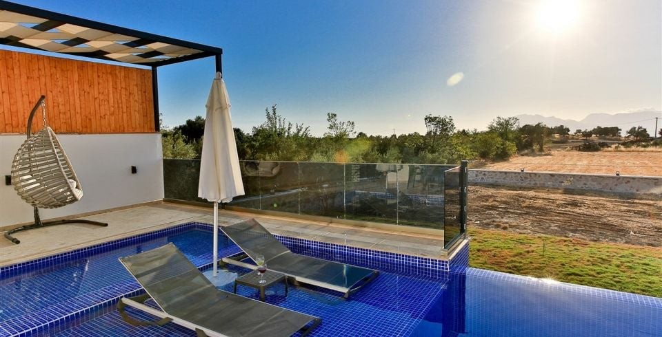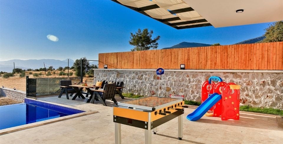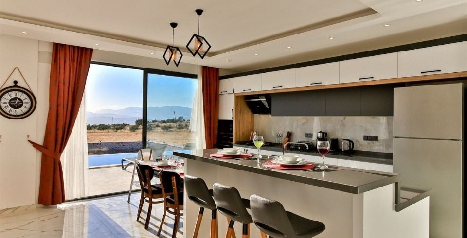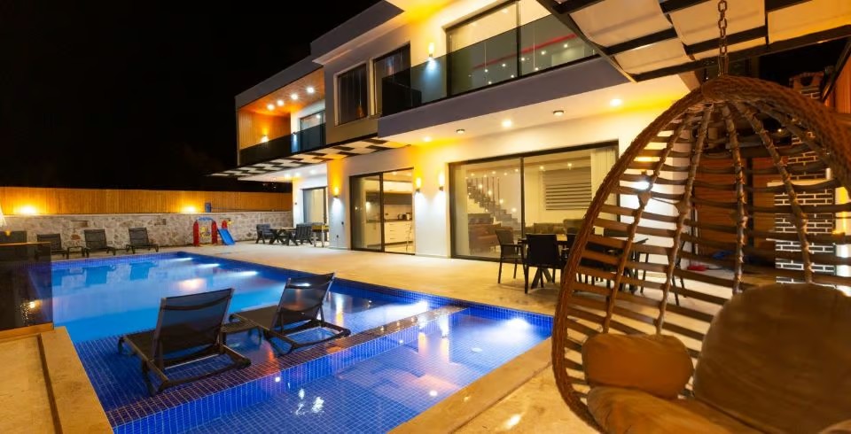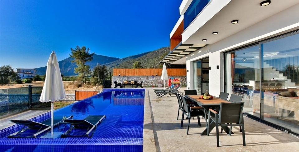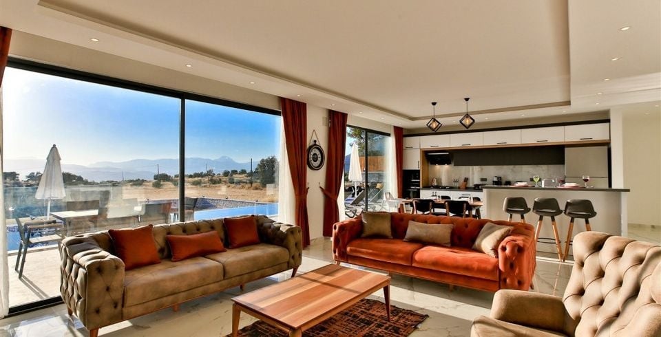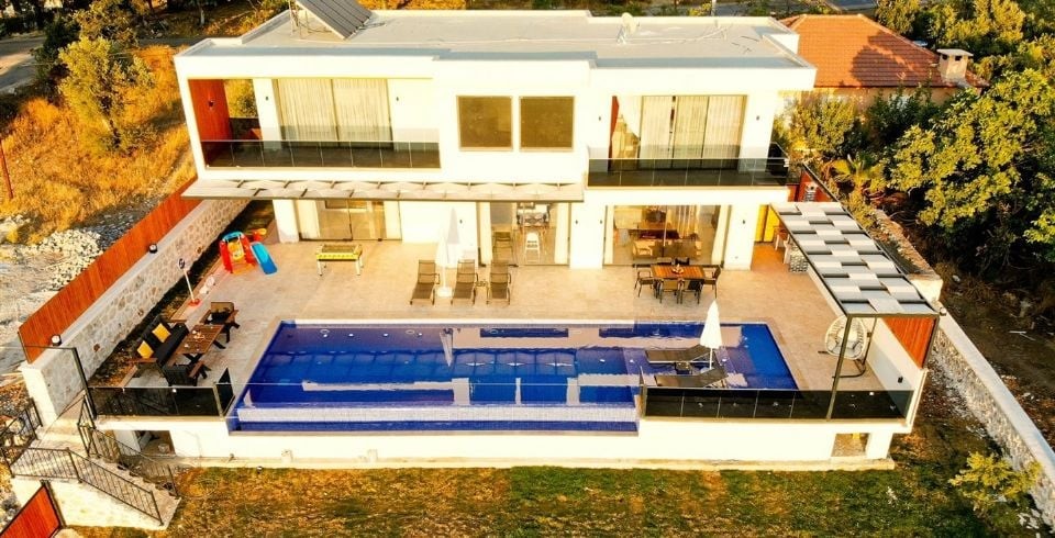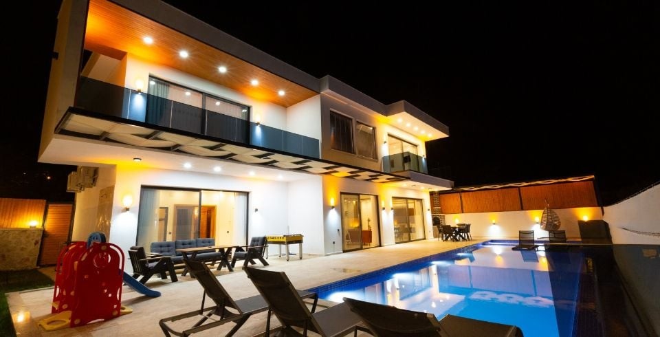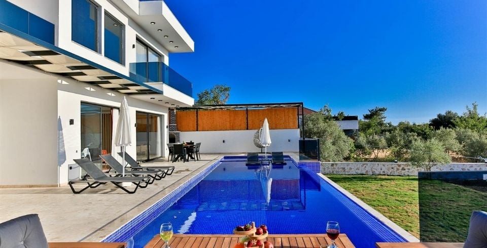 Villamız Kalkan Üzümlü bölgesinde yer almakta olup 3 yatak odalı 6 kişiye kadar konaklama imkanı sağlamaktadır. Villamız çift jakuzili olup sauna ve hamamı bulunan lüks villamız doğa içerisinde olup sessiz sakin bir ortamda tatilinizi geçirebileceğiniz bir ortam sunmaktadır. Özel tasarımı ile göz dolduran villamızın Amerikan mutfağında ihtiyaç duyabileceğiniz tüm mutfak ekipmanları mevcut olup konforlu mobilyalarla dizayn edilmiş salonu hizmetinizdedir. Balayı çiftleri ve çekirdek aileler için ideal seçeneklerimizdendir.
