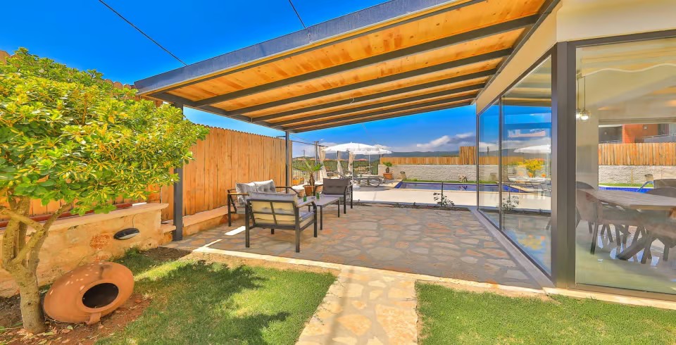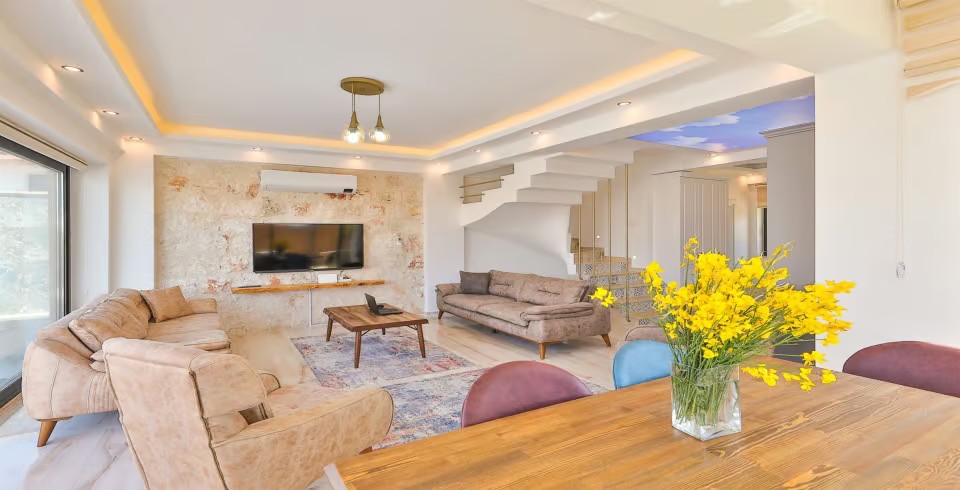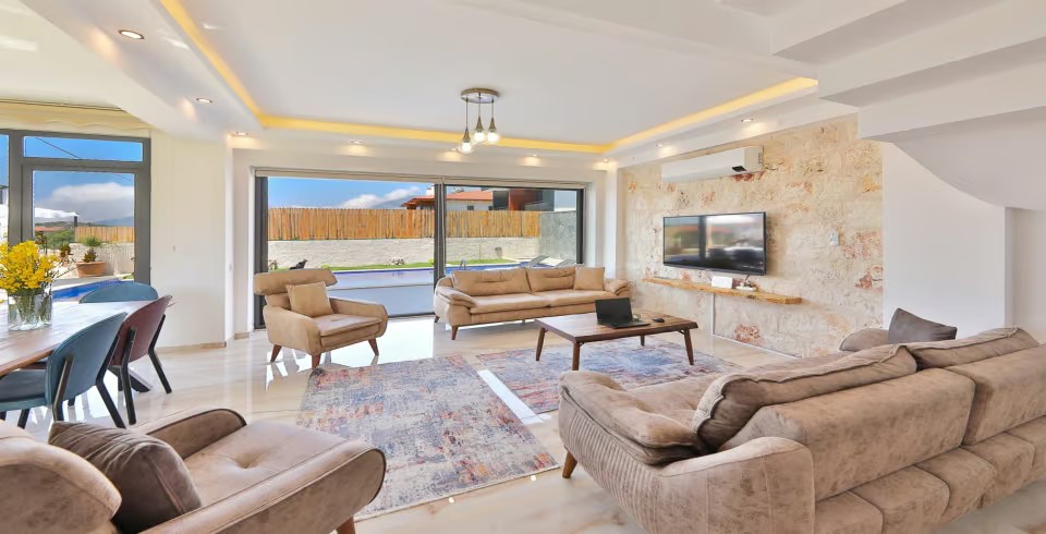 Salon :  Villa salonunda oturma grubu, TV, internet, klima,  sehpa bulunmaktadır.