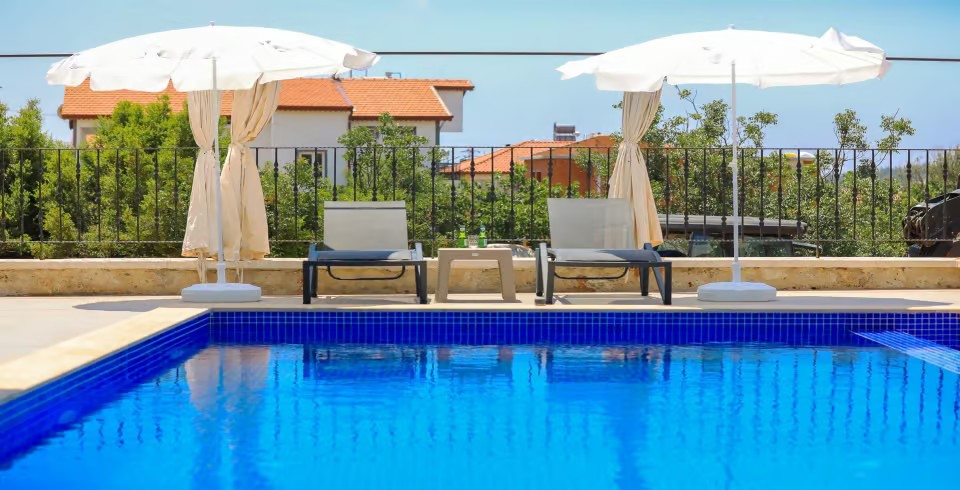 Havuz ve Bahçe : Villamızın havuz terasında şezlong, şemsiye, oturma grubu, yemek masası, barbekü, salıncak, masa tenisi, özel yüzme havuzu, bulunmaktadır.