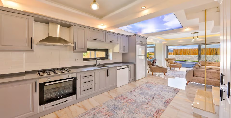 Mutfak : Buzdolabı, 4’lü ocak, fırın, yemek takımı, bardak takımı, yemek masası, çatal-bıçak takımı, tencere-tava takımı, bulaşık makinesi bulunmaktadır.