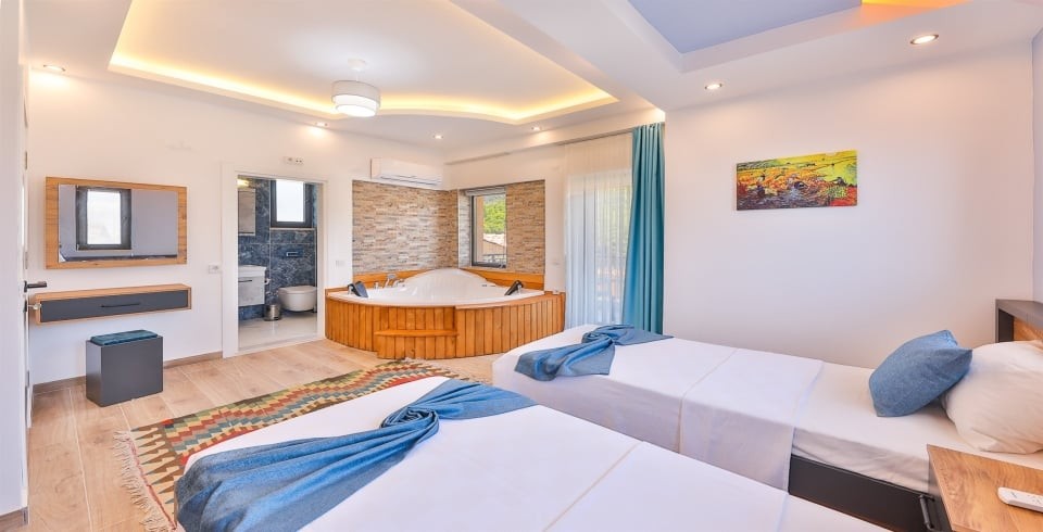 1. Yatak Odası : Çift kişilik yatak, klima, komodin, jakuzi, makyaj masası, elbise dolabı, balkon, banyo ve lavabo bulunmaktadır.