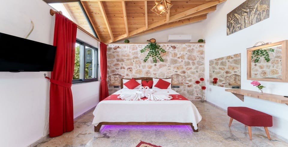 Kalkan Sarıbelen mevkiinde yer alan, özel havuzu tam korunaklı villamızdır. Villamız yemyeşil bahçeye sahiptir. Konforlu ve şık bir iç mekana sahip villamızda harika bir tatil geçirebilirsiniz ve tüm yılın yorgunluğunu üzerinizden atabilirsiniz. Ayrıca villamızda bulunan spor aletleri sayesinde sağlığınıza dikkat edebilir; Masa tenisi, çocuk oyun alanı, tavla, okey takımı, dart, satranç ve salıncak sayesinde ise aileniz ile birlikte eğlenceli zaman geçirebilirsiniz.