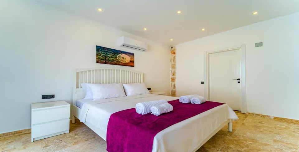 2. Yatak Odası : 1 adet Çift kişilik yatak, klima, komodin, banyo ve lavabo bulunmaktadır.