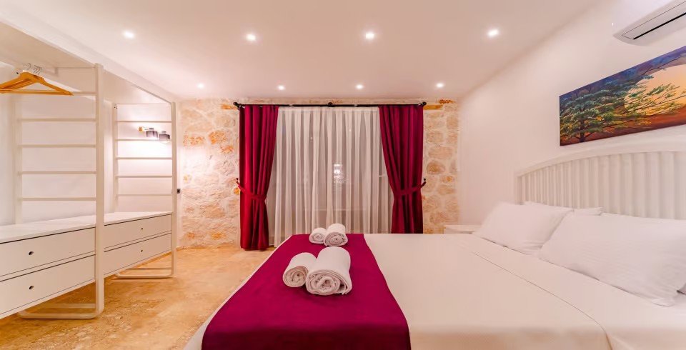 1. Yatak Odası : 1 adet Çift kişilik yatak, klima, komodin, jakuzi, makyaj masası, banyo ve lavabo bulunmaktadır.