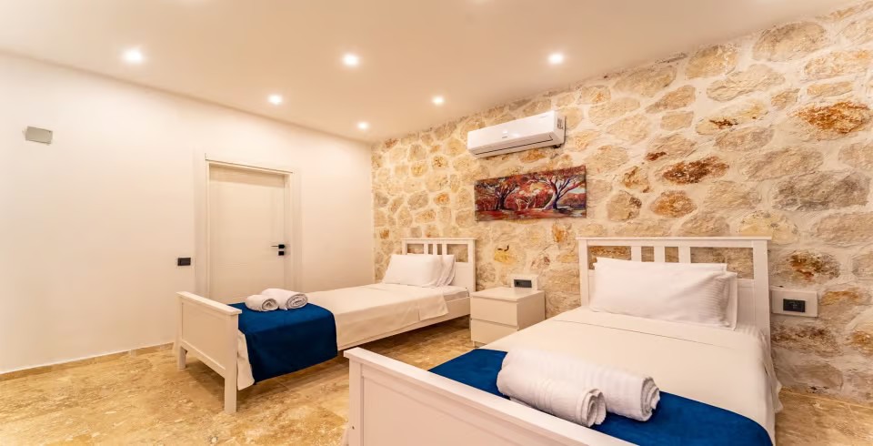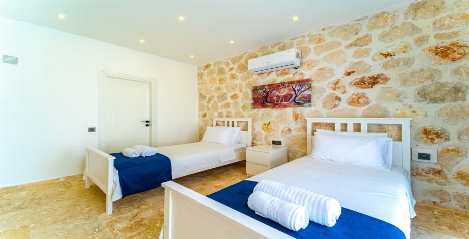 3. Yatak Odası : 2 adet tek kişilik yatak, komodin, klima, banyo ve lavabo bulunmaktadır.