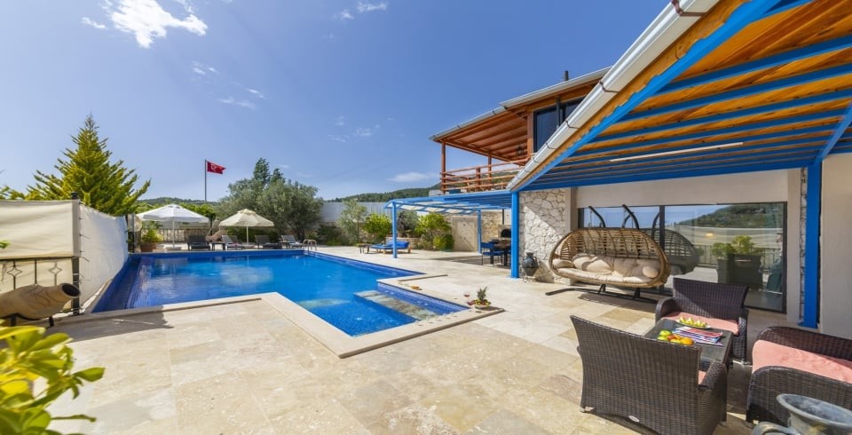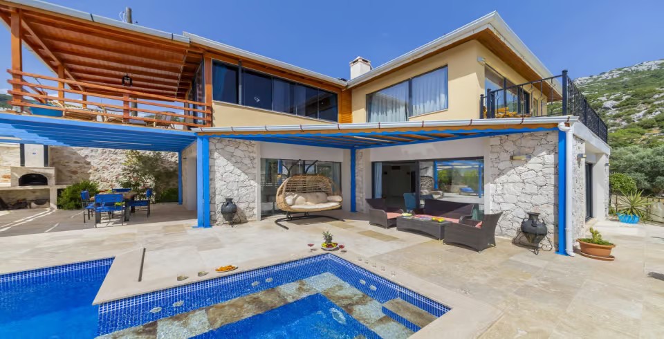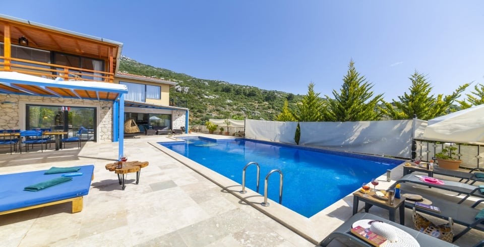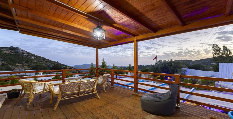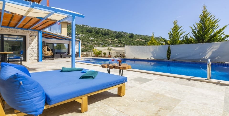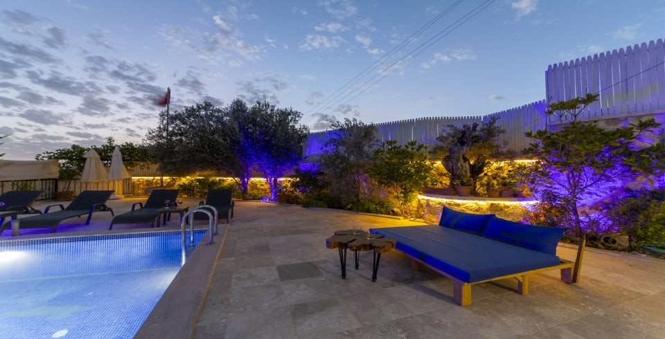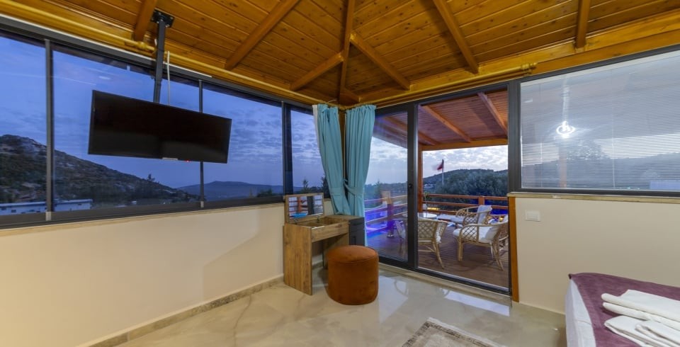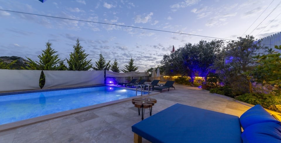 Villamız Kalkan İslamlar bölgesinde konumlanmakta olup. 3 yatak odası ile birlikte 6 kişi konaklama kapasitesine sahiptir. Doğa içinde konumlanan villamız muhafazakar ailelerin vazgeçilmezidir. Yatak odalarından bir tanesinde jakuzi bulunmaktadır.