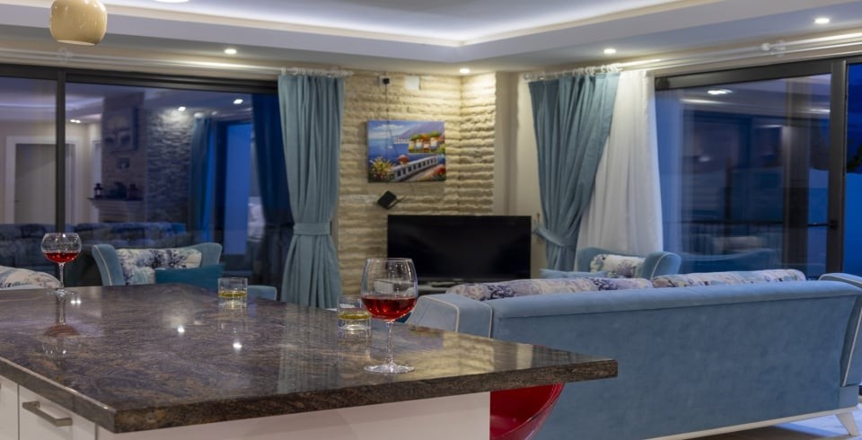 Salon : Modern ve lüks dizayna sahip salon içerisinde konforlu oturma grubu, TV, DVD oynatıcı, klima ve internet yer almaktadır.