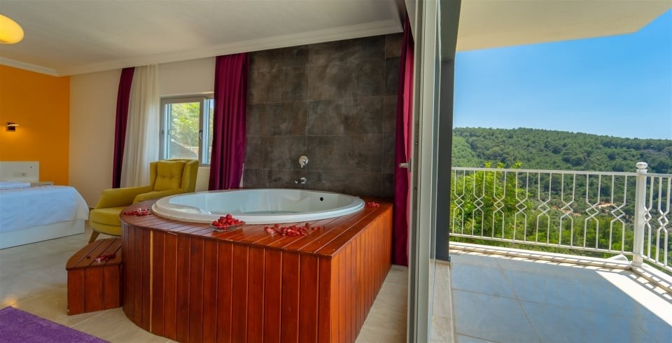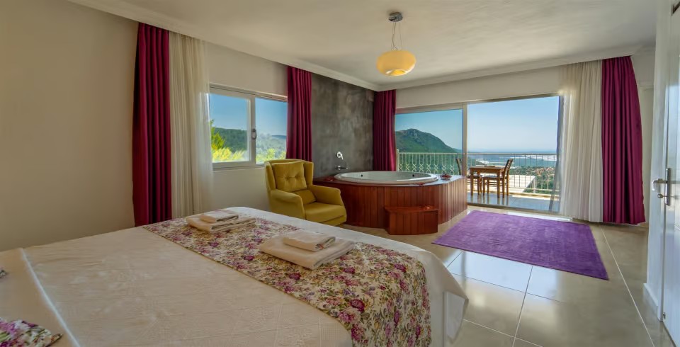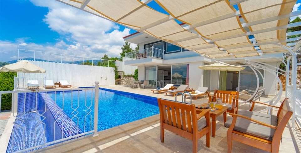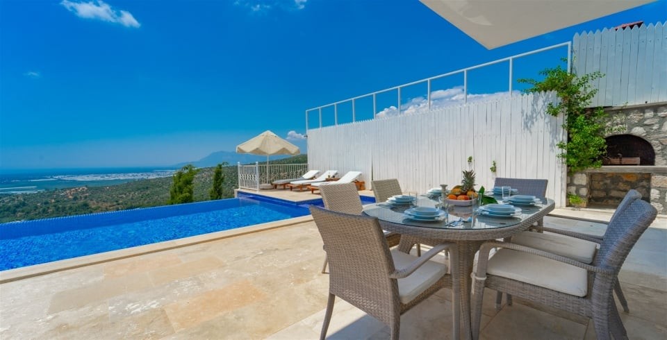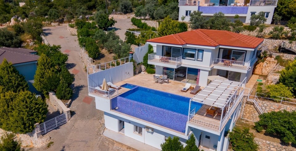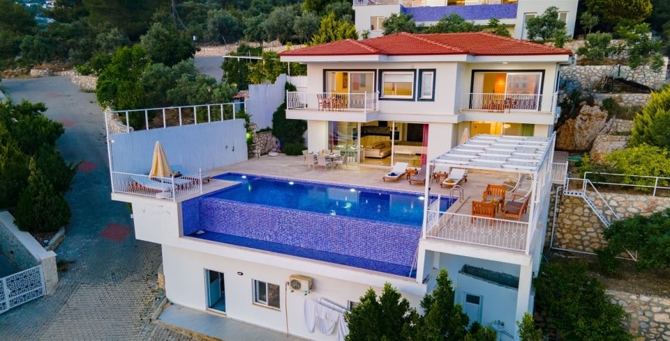 Kalkan’ın Üzümlü Köyü mevkisin de yer alan muhteşem manzaralı Villa Oscar muhafazakar ve dışarıdan korunaklıdır. Sessiz, sakin ve huzurlu bir tatile kimse hayır demez. Bütün bir yılın yorgunluğunu, şehrin gürültüsünü ve stresini üzerinizden atmak için doğa ile iç içe korunaklı villamız muhafazakar ailelerimize hitap ediyor. Yalnızca aile değil, balayı çifti iseniz de konforlu bir tatil geçirmek istiyorsanız Villa Oscar tam da size göre. Villamız Kalkan merkeze araba ile 10 dakika uzaklıktadır. Dışarıdan görünmeyen korunaklı videomuz 6 kişilik konaklama kapasitesine sahiptir.