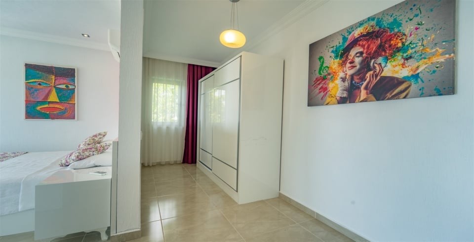3. Yatak Odası : Aynı şekilde balkona açılan süit odamızda 1 adet çift kişilik yatak, klima, elbise dolabı, banyo ve lavabo bulunmaktadır.