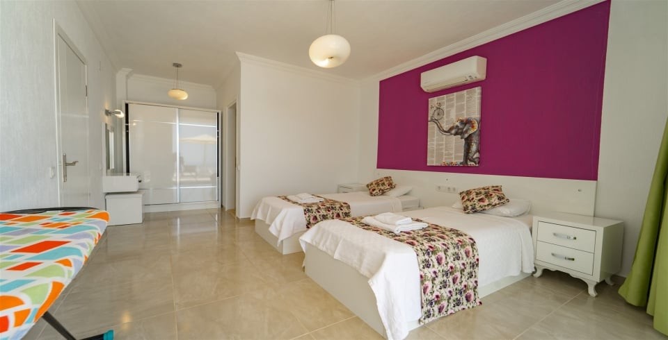 2. Yatak Odası : Sonsuz manzaraya karşı balkona açılan süit odamızda 2 adet tek kişilik yatak, klima, elbise dolabı, balkon, banyo ve lavabo bulunmaktadır.
