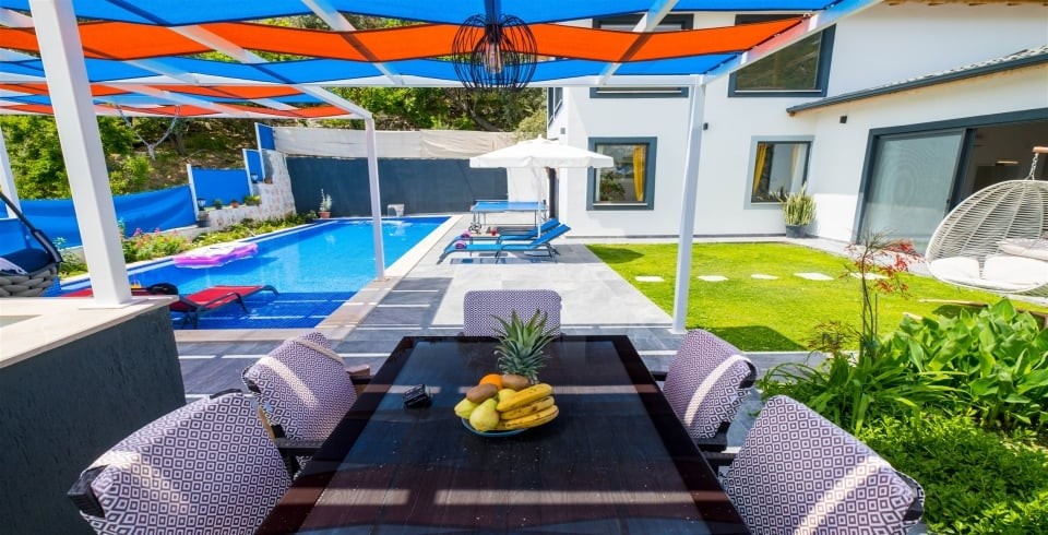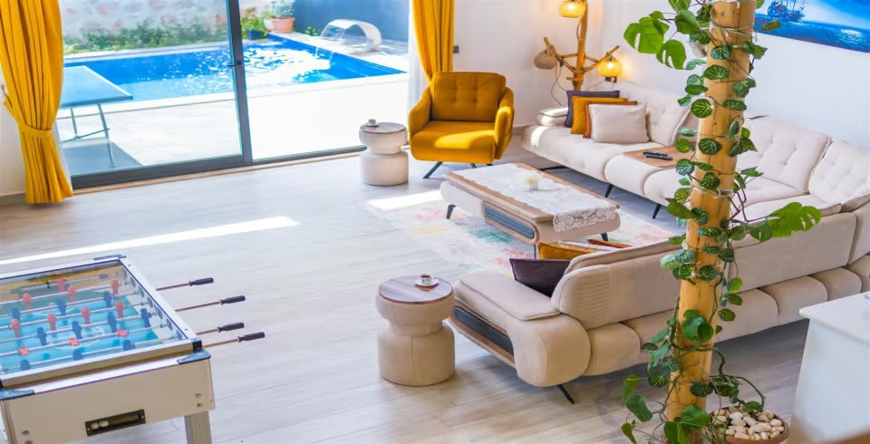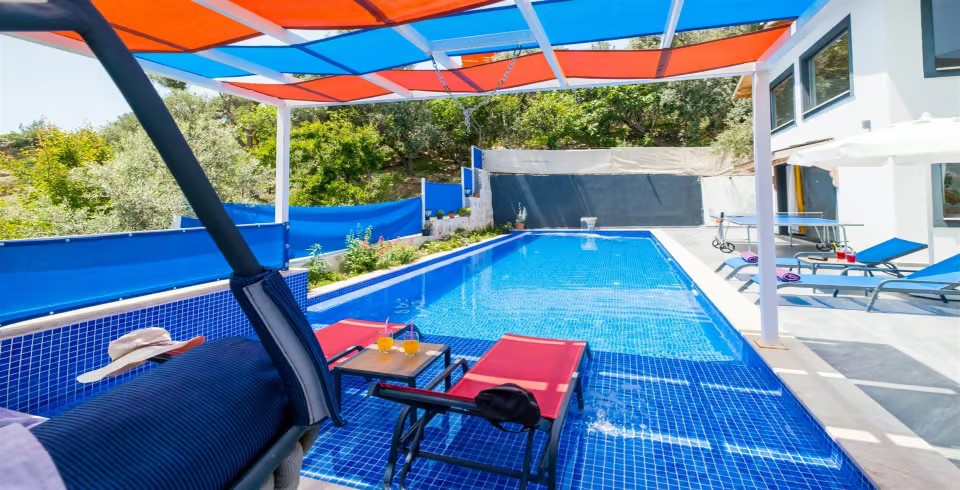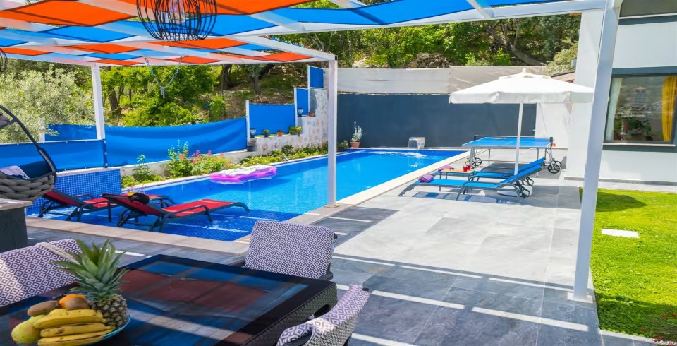 Villa Öz Kaplan, mahremiyete önem veren misafirler için doğayla iç içe, konforlu ve eğlenceli bir tatil seçeneği sunuyor.
