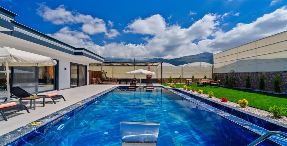 Havuz : Villamızın havuzu ise etrafı dışarıdan görülmeyecek şekilde korunaklı olup sizlere huzurlu ve keyifli havuz deneyimi sunmaktadır. Size özel muhafazakâr yüzme havuzu, şezlong keyfi ve şemsiye ile yazın en güzel günlerinde sizleri bekliyor.