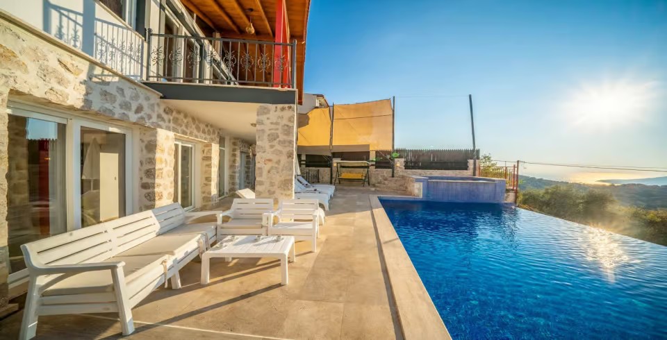 Kalkan merkezine sadece 3 kilometre mesafede bulunan bu özel villa, konumuyla tatilcilerin ihtiyaçlarına kolaylıkla cevap verebilmektedir. Jakuzi ve diğer lüks olanaklarla donatılmış olan bu konaklama birimi, konfor ve rahatlık arayan misafirler için ideal bir seçenektir. Hem merkeze yakın olması hem de çevredeki diğer önemli noktalara kolay erişim imkanı sunması, tatilinizi daha keyifli hale getirecek önemli avantajlardan biridir.