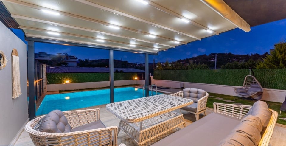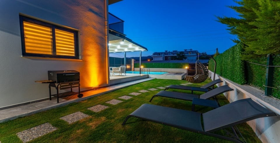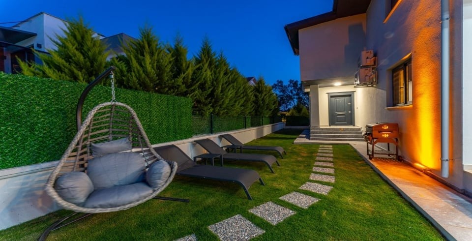 Havuz ve Bahçe: Bahçe içerisinde özel yüzme havuzu, şezlong , bahçe oturma grubu, salıncak ve barbekü yer almaktadır.