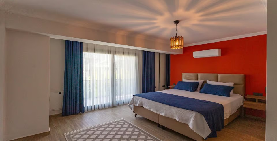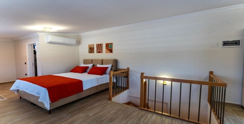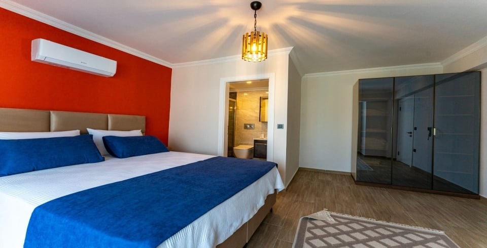1. Yatak Odası: 1 çift kişilik yatak, komodin, banyo/WC, klima, elbise dolabı, bulunmaktadır.