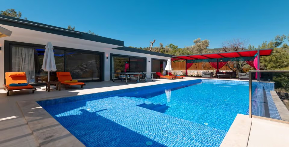 Havuz ve Bahçe : Villamızın özel yüzme havuzu, şemsiye, şezlong, barbekü, yemek masası,langırt ve masa tenisi  bulunmaktadır.
