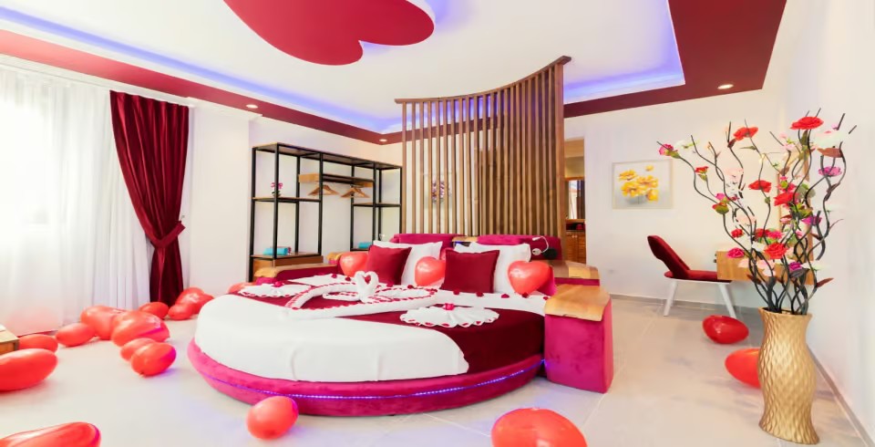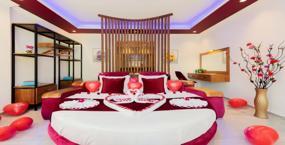 Yatak Odası: Çift kişilik yatak, komodin ,klima, makyaj masası, elbise dolabı, jakuzi, banyo ve tuvalet bulunmaktadır.
