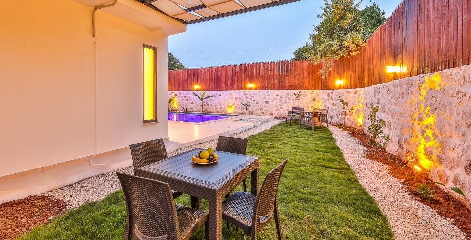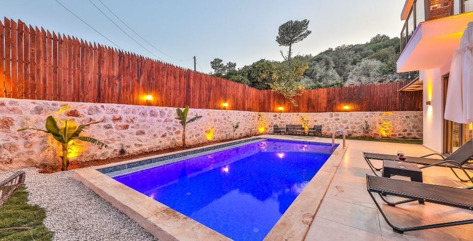 Villamız Kalkan Patara bölgesinde yer almaktadır. 1 yatak odasına sahip tatil villamız 2 kişilik konaklama kapasitesine sahiptir. Doğa içinde bir konuma sahip olan tatil villamızın havuz alanı sizlere keyifli bir tatil ortamı sunmaktadır. Balayı çiftleri için ideal bir seçenek olan muhafazakar hassasiyete sahip misafirlerimiz içinde uygun bir tatil ortamı sunmaktadır.