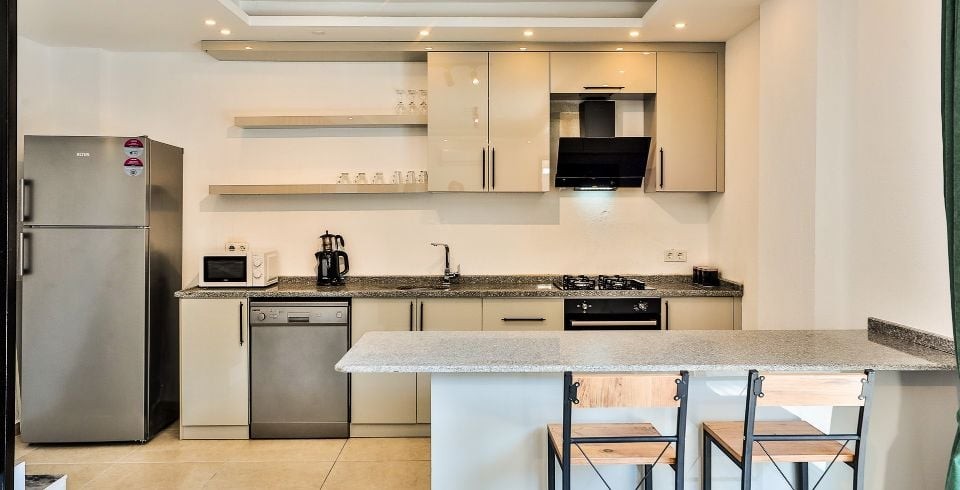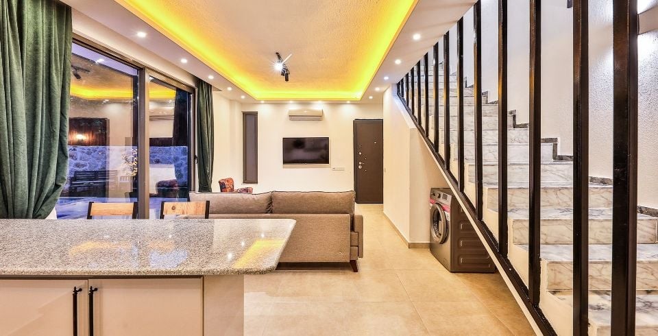 Mutfak: Villamızın mutfağında buzdolabı bulaşık makinası, çamaşır makinası, 4'lü ocak, ketıl, mikro dalga fırın, filtre kahve makinası yemek takımı bulunmaktadır.