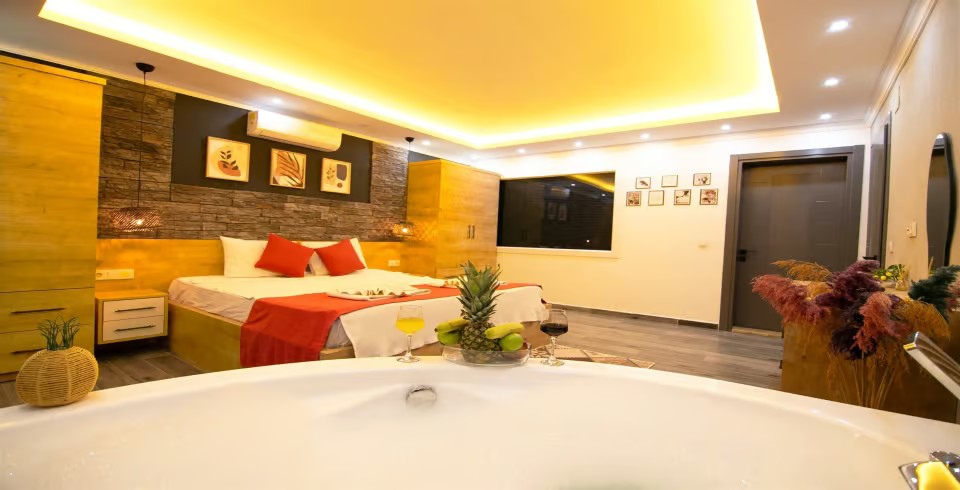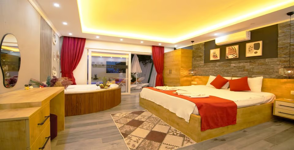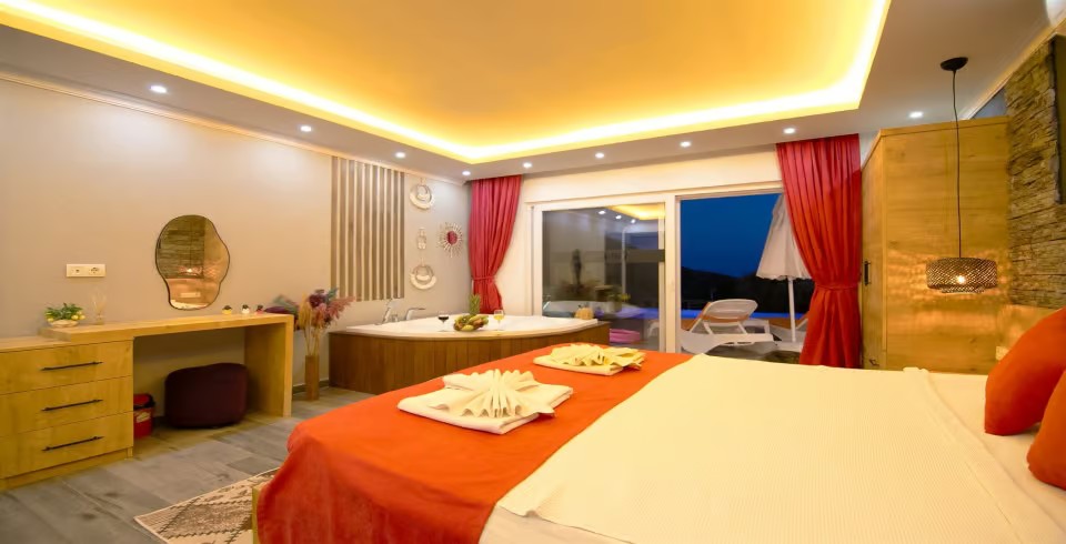 Kalkan’ın sakin ve huzurlu bölgesi İslamlar’da yer alan Villa Petra, balayı çiftleri için özel olarak tasarlanmış, konforlu ve mahremiyete önem veren bir tatil villasıdır. Muhafazakar yapısı, gözlerden uzak, rahat bir konaklama sunarken; iç mekândaki jakuzi ve sauna, tatilinize lüks ve dinlendirici bir dokunuş katar.Doğayla iç içe, sessiz bir atmosferde romantik bir kaçamak yapmak isteyen çiftler için Villa Petra, hem konforu hem de özel alanı bir arada sunar.