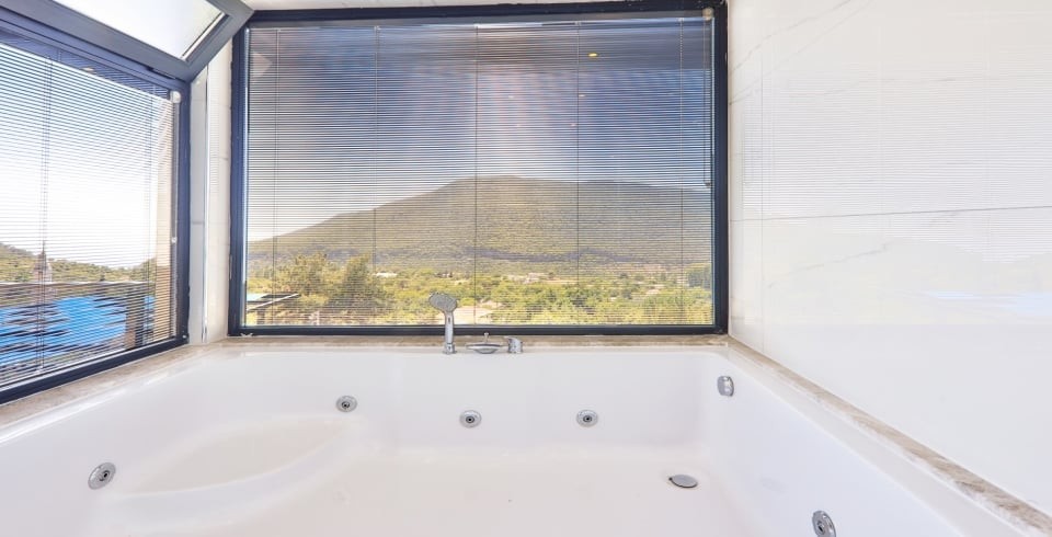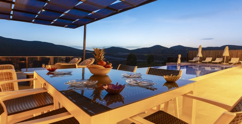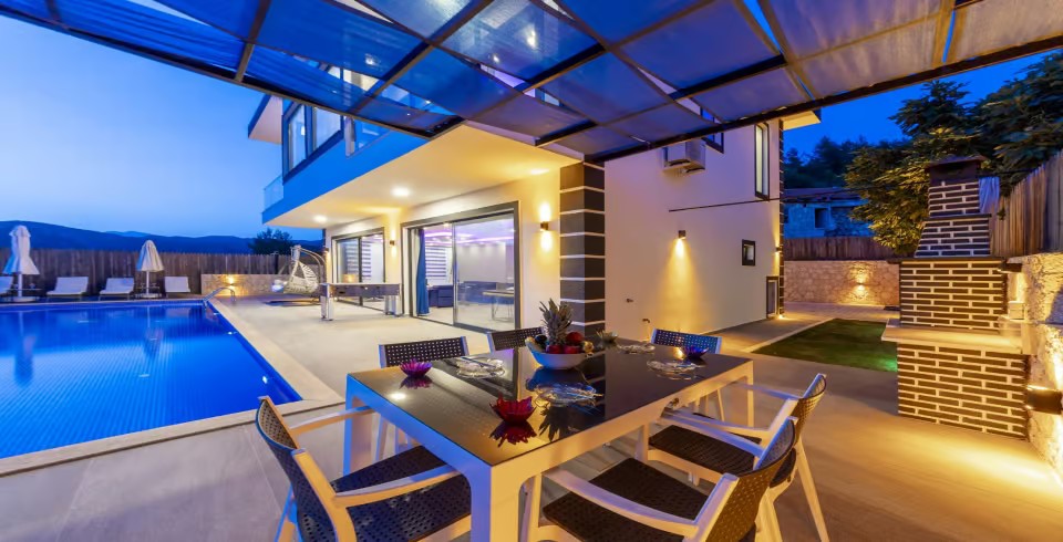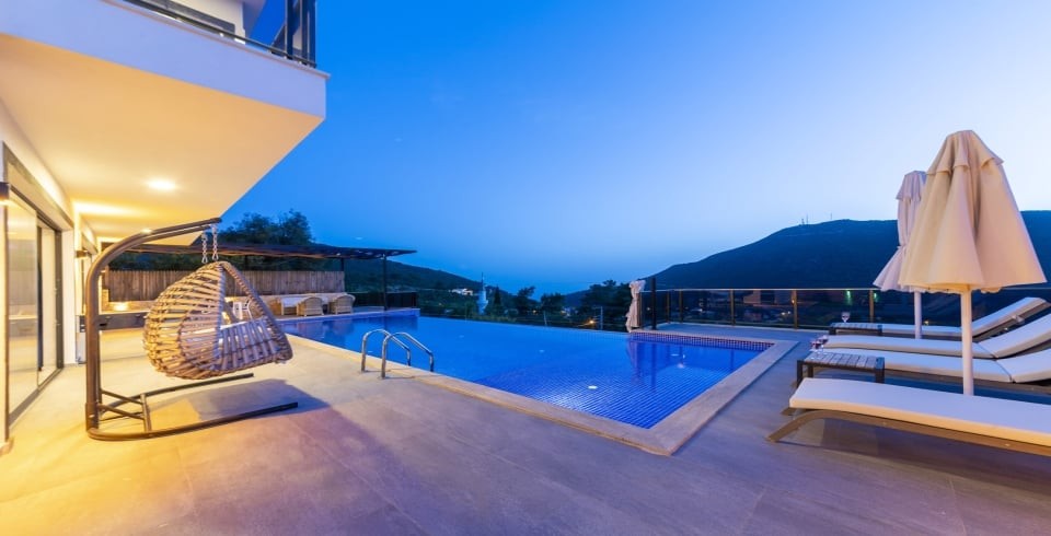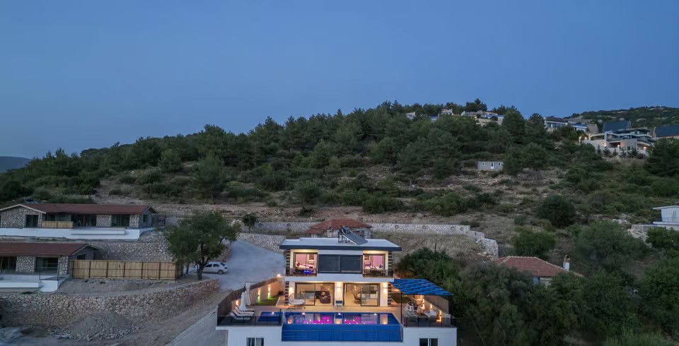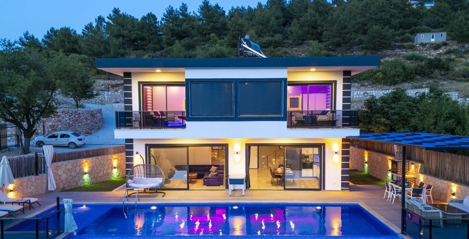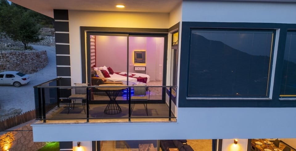 Kalkan’ın Sarıbelen bölgesinde konumlanan kiralık, yazlık, muhafazakar, iki katlı – dubleks villamız hem balayı çiftlerimizin hem de muhafazakar çekirdek ailelerin tercihi olup 2 yatak odalı ve 4 kişilik konaklama kapasitesine sahiptir. Kalkan’ın panoramik deniz manzarasına karşı ve doğa ile iç içe olan Villa Pilot modern bir mimari anlayışı ile inşa edilmiştir aynı zamanda iç mekanında da oldukça lüks, şık ve modern eşyalarla donatılmıştır. Villamızın süit yatak odasında sonsuz manzaraya karşı çift kişilik jakuzi bulunmaktadır. İnşaatı 2020 yılında tamamlanan yeni villamız sitemizde yerini aldı. Sarıbelen merkezine yakın konumda yer alan Villa Pilot, günlük ihtiyaçlarınızı kolaylıkla karşılayabileceğiniz bir mesafe uzaklığındadır. Buna rağmen villamız kişisel aracınız yoksa konaklama için pek de uygun değildir. Siz misafirlerimize şimdiden keyifli tatiller diler, pişman olmayacağınızı, hatta tekrar tekrar bizi tercih edeceğinizi belli etmek isteriz.