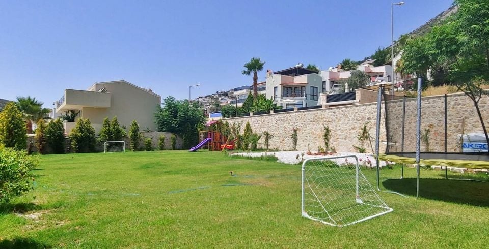 Dış mekânda 9 × 4 metre ölçülerinde özel bir havuz ve entegre jakuzi bölümü bulunur. Bu alan; şezlonglar, gölgeli oturma alanları, barbekü köşesi, al fresco yemek masası ile donatılmıştır. Ayrıca geniş bir bahçe alanı çocuklar için oyun alanı, futbol ağı ve trambolin ile desteklenmiştir.