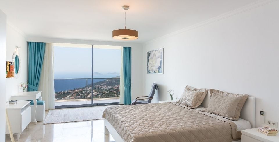 Villada her biri ebeveyn banyolu odalar yer alır; bazı odalarda balkon ve deniz manzarası mevcuttur. Özellikle bir odada jakuzi bulunması, konfor seviyesini artırmaktadır. Üst kattaki iki oda, çatı terasına doğrudan erişim imkânı sunar.