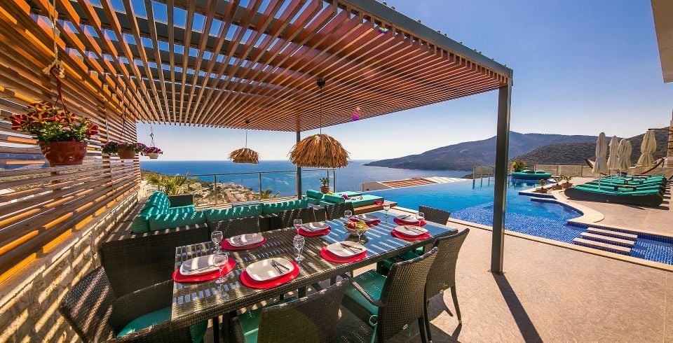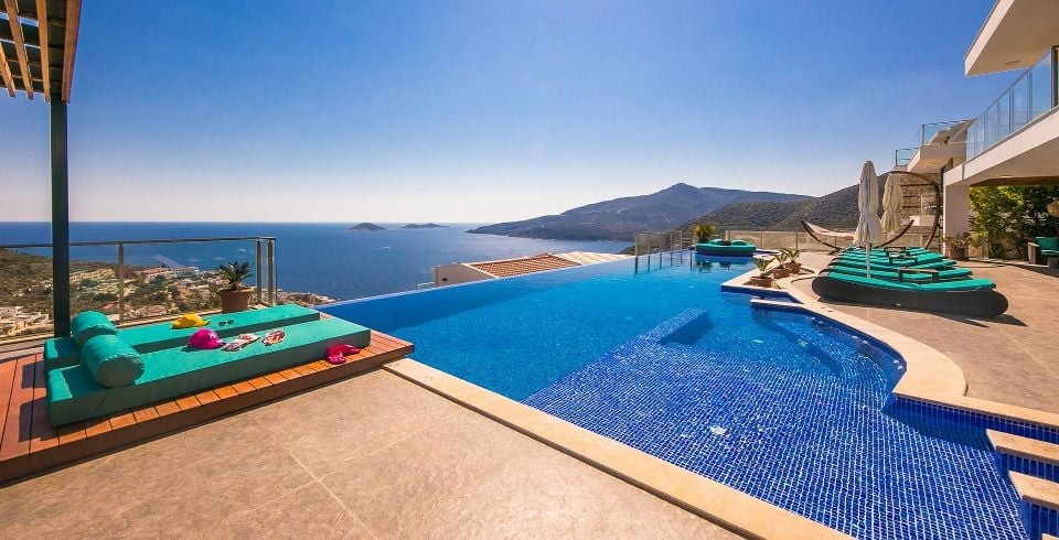 Eşsiz doğa ve deniz manzarasına sahip olan Villa Pırlanta Duo 5 Süit yatak odası ve 10 Kişilik konaklama imkanı sunmaktadır. Kalkan Koyunu, denizini ve adaları ayaklarınızın altına seren kesintisiz panoramik manzarası ile en güzel anılarınıza yenilerini ekleyeceğiniz bir bambaşka tatları tadacağınız harika bir tatil sizi bekliyor.