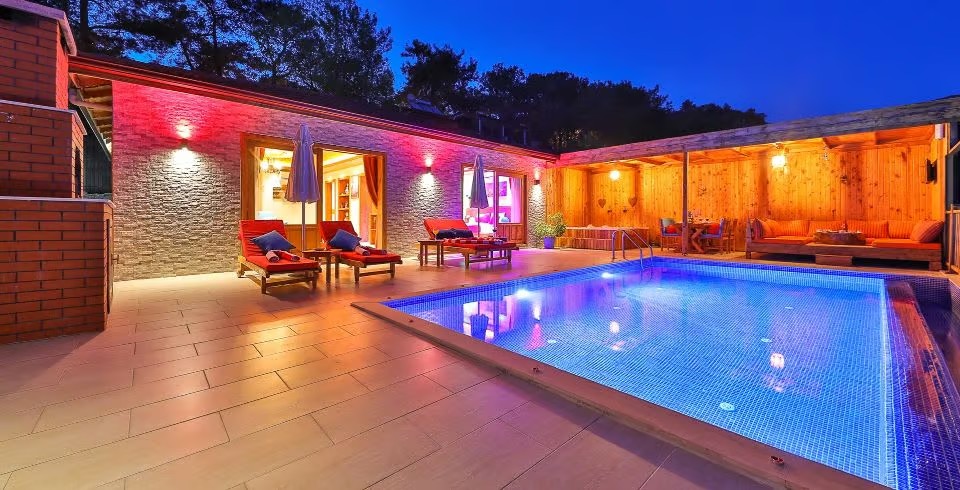 Havuz : Villamızın havuzu ise etrafı dışarıdan görülmeyecek şekilde korunaklı olup sizlere huzurlu ve keyifli havuz deneyimi sunmaktadır. Size özel muhafazakâr yüzme havuzu, şezlong keyfi ve şemsiye ile yazın en güzel günlerinde sizleri bekliyor.