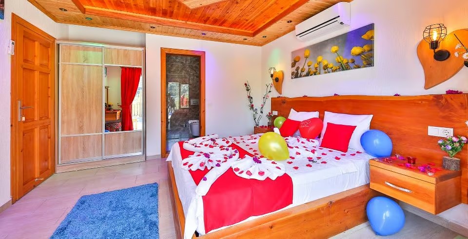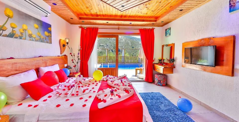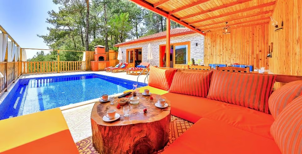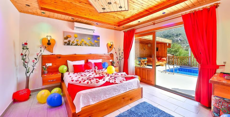 Villa Polat, Kalkan İslamlar bölgesinde bulunuyor. 4 Kişilik konaklama kapasitesi bulunan villamızda 2 yatak odası mevcuttur. Muhafazakâr olan villamız korunaklı olarak tasarlanmıştır ve balayı çiftlerine de hitap eder. Doğa içerisinde konumlanmış villamız son derece sakin ve kafa dinlemeye çok uygundur. Villamızın geniş havuz terasında ahşap kaplama bir jakuzide bulunmaktadır. Aynı zamanda villamızda bir keyif kamelyası da vardır. Bu sayede şahane doğa manzarasına karşı keyif yapabilirsiniz. Villa içerisinde ihtiyacınız olan her şey yer almanın yanı sıra eşyalar siz müşterilerin konforuna göre döşenmiştir. Aileniz veya eşiniz ile beraber harika vakitler geçireceğiniz villamızın bahçesinde barbekü partileri yapabilir, korunaklı terasımızda bulunan şezlonglar ile güneşin tadını çıkartabilirsiniz. Villamız markete 500 metre ve restauranta 200 metre mesafededir. Villa Polat, siz değerli tatilcilerine güzel zamanlar yaşatmak için bekliyor.