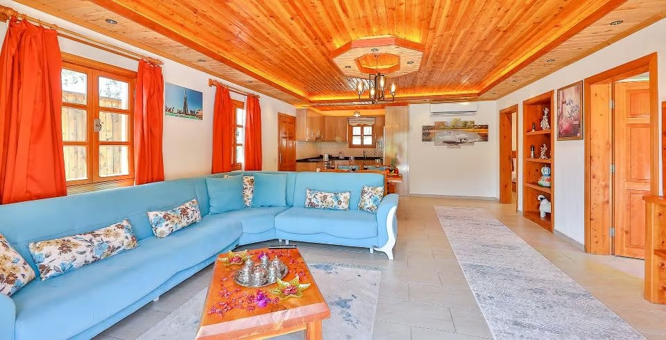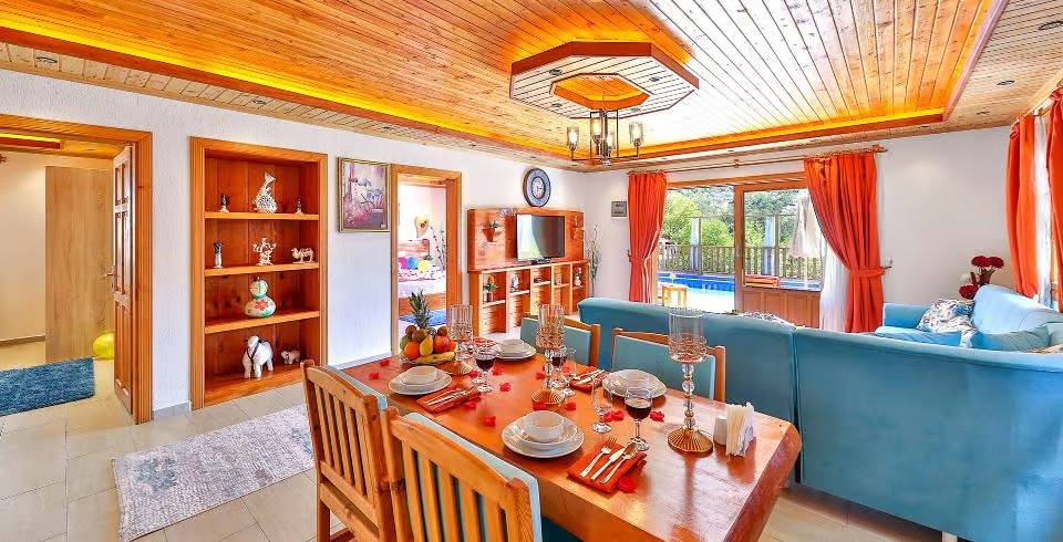 Salon : Villa Polat’ın salonunda sizi şık bir oturma grubu ile klima, televizyon, internet, uydu, koltuk, sehpa ile ferah bir salon bekliyor olacaktır. Havuz terasına çıkış yapılmaktadır.