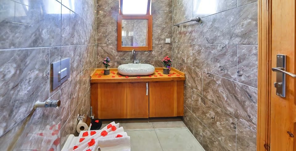 1. Yatak Odası : 1 adet çift kişilik yatak, televizyon, klima, komodin, elbise dolabı, makyaj masası, banyo ve lavabo bulunmaktadır.